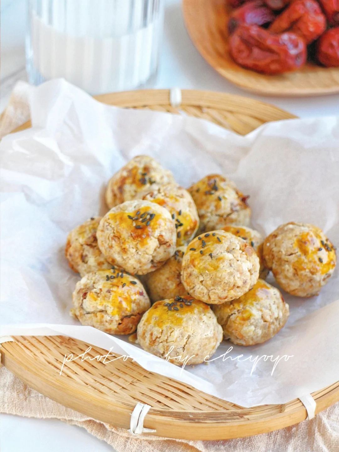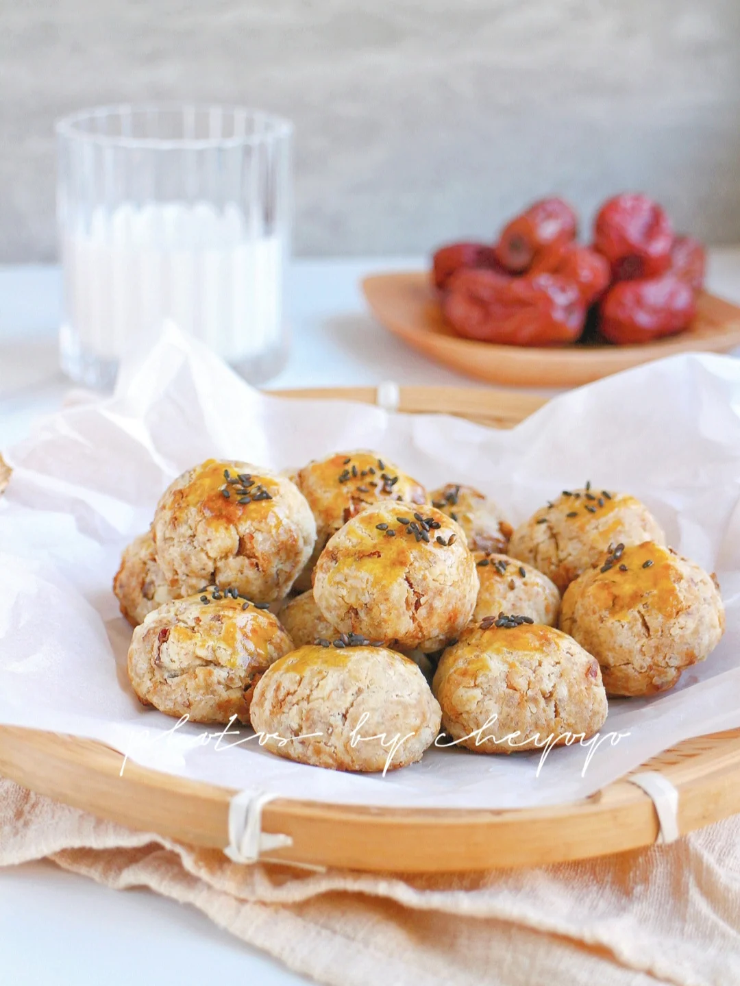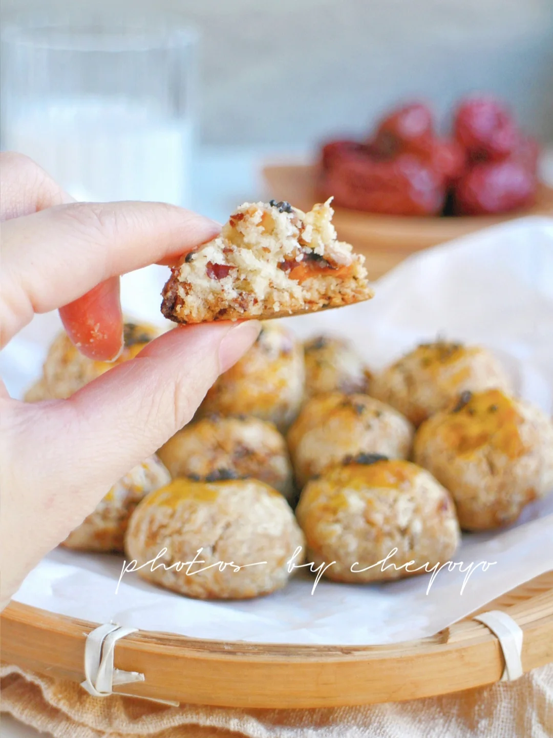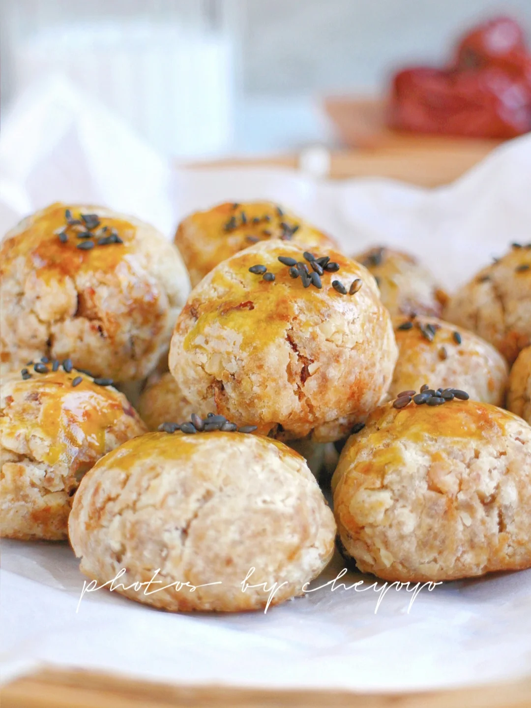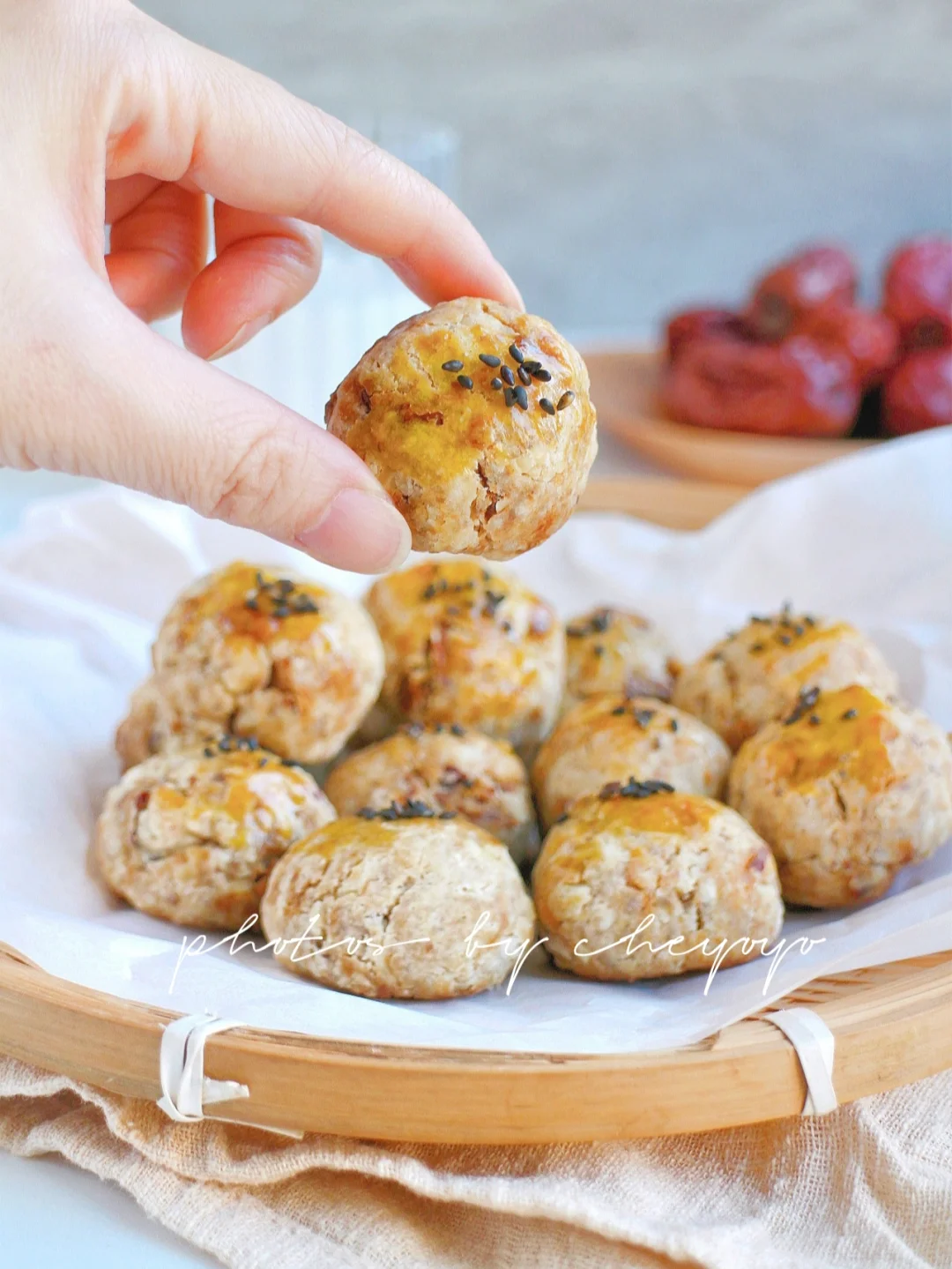 全家都爱吃的核桃红枣酥,一口一个好吃停不下!还有一种做法是加全蛋液,口感要脆一些。但我还是觉得不加蛋液要更酥更好吃~[派对R]