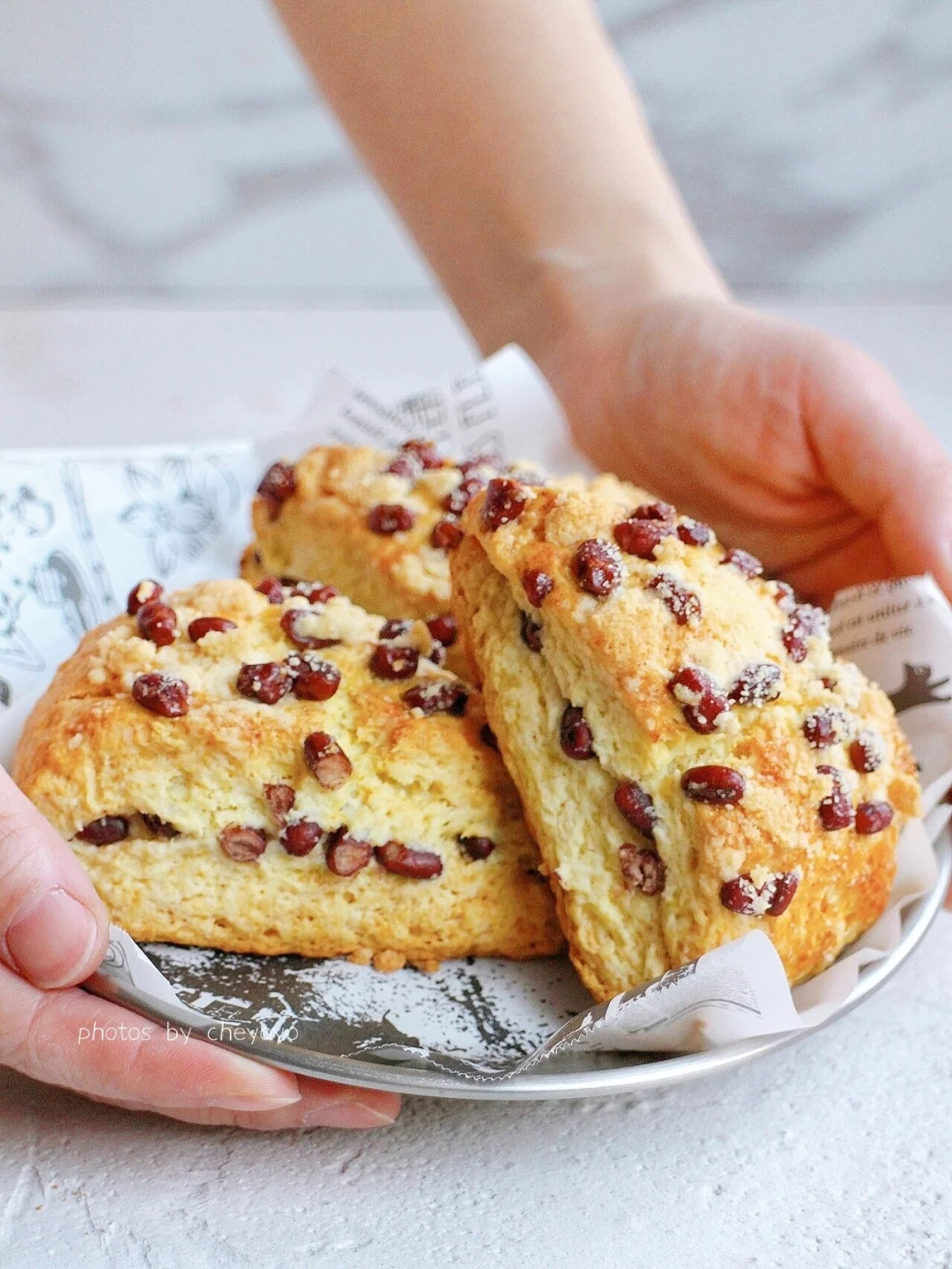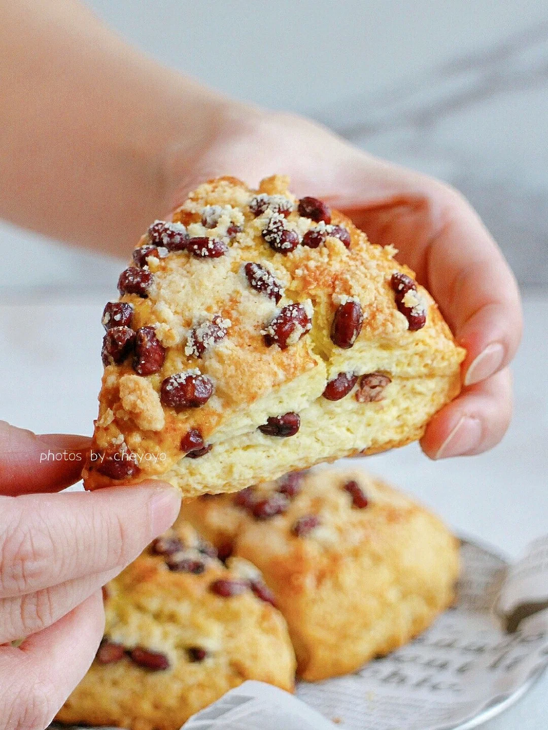 太喜欢星巴克的红豆司康了!裹着满满的蜜红豆和金宝酥粒,奶香浓郁,酥脆可口,可不知道为什么这么高人气的司康被下线了[汗颜R][汗颜R] 好吧,在家还原这个超好吃的司康!又简单又快手!