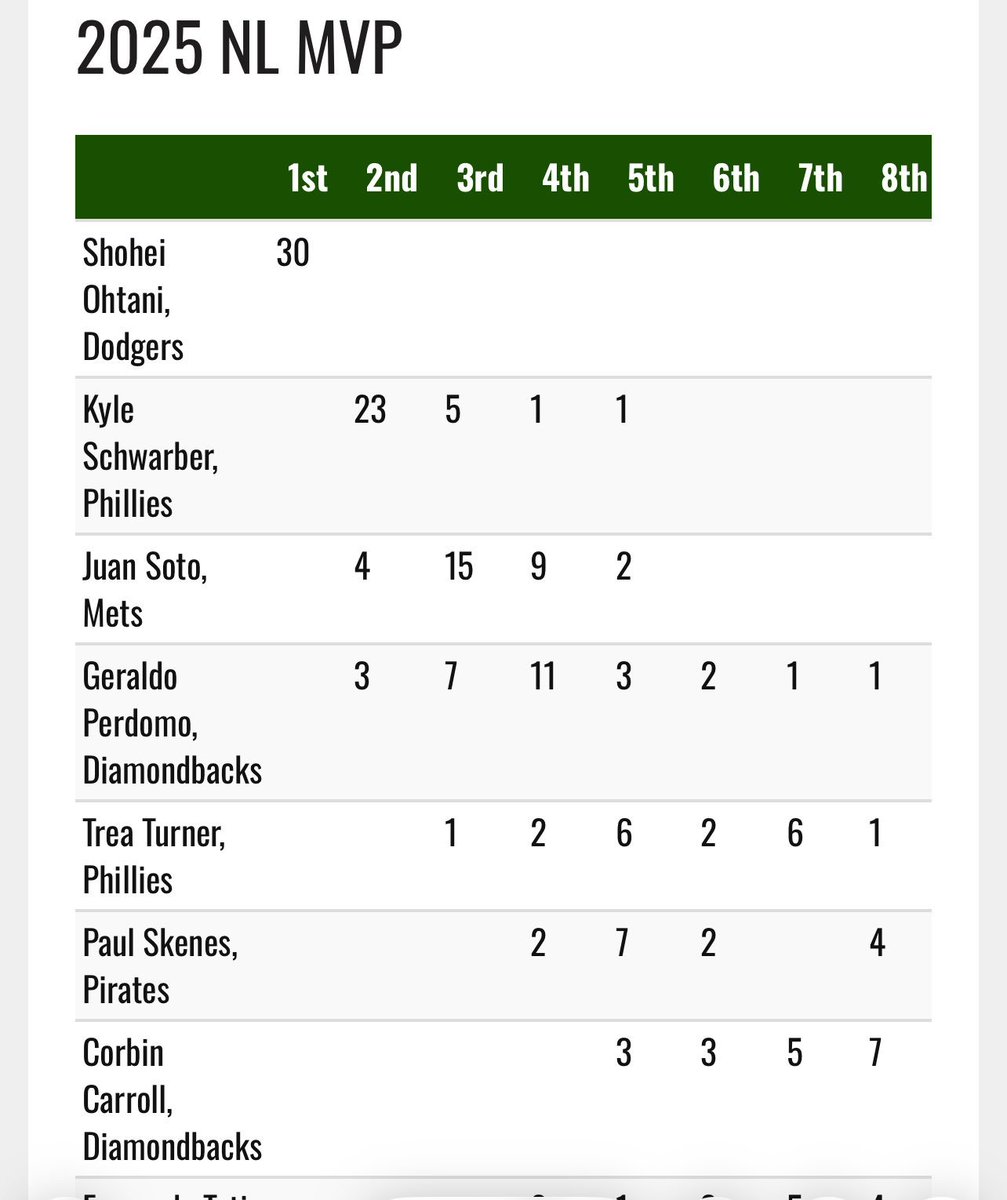 ShoheiOhtaniisUNANIMOUSonceagain,receivingall30first-placevotesAll4ofhisMVPawardshavebeenunanimous