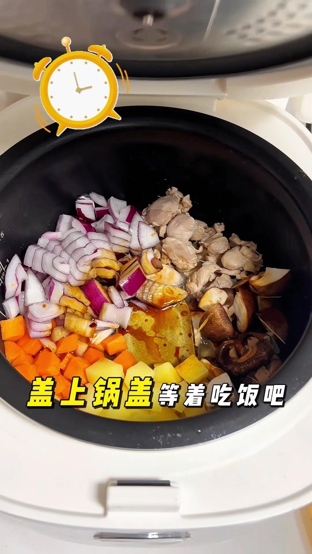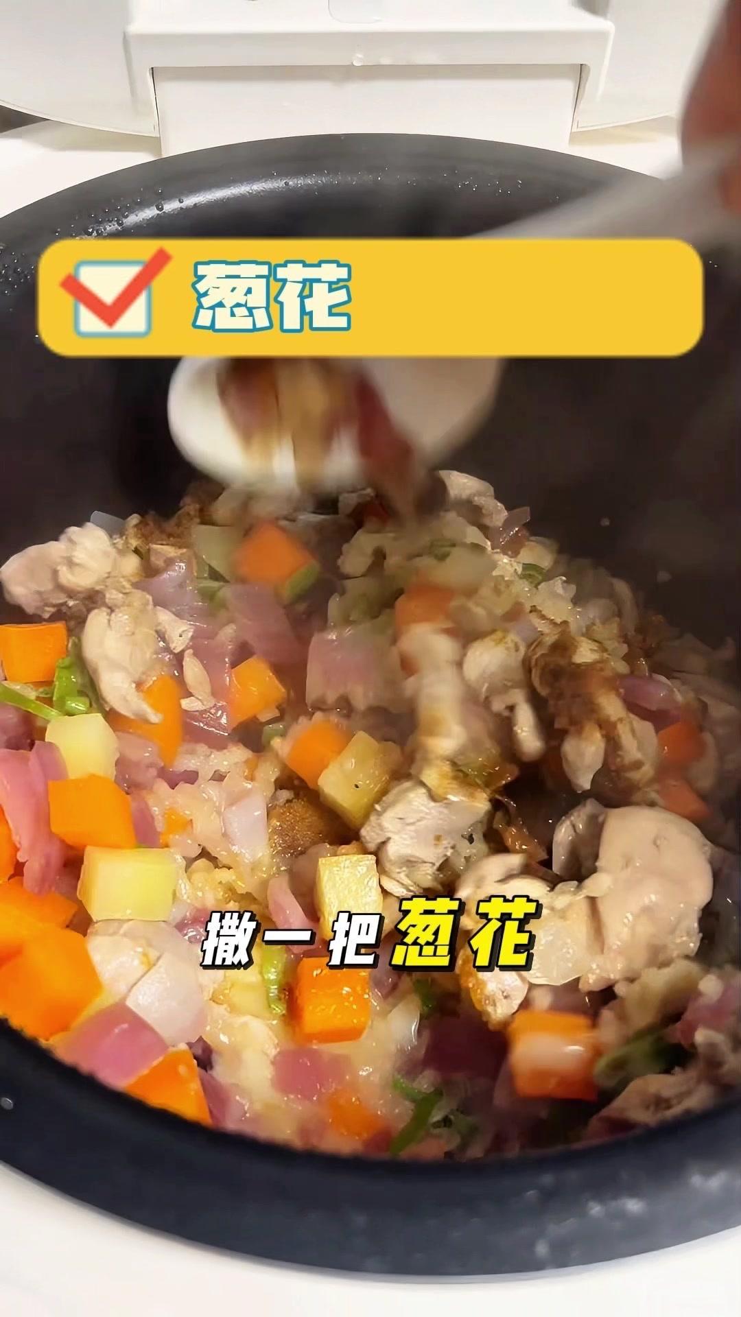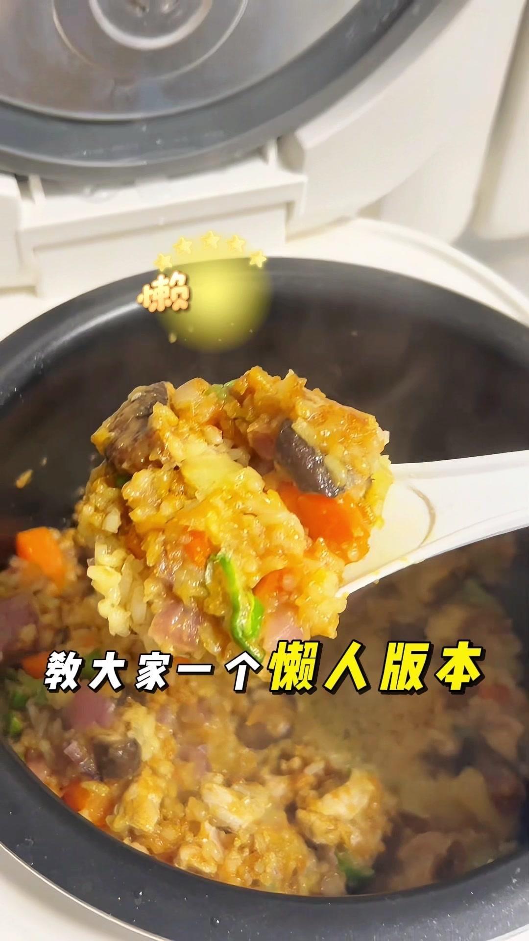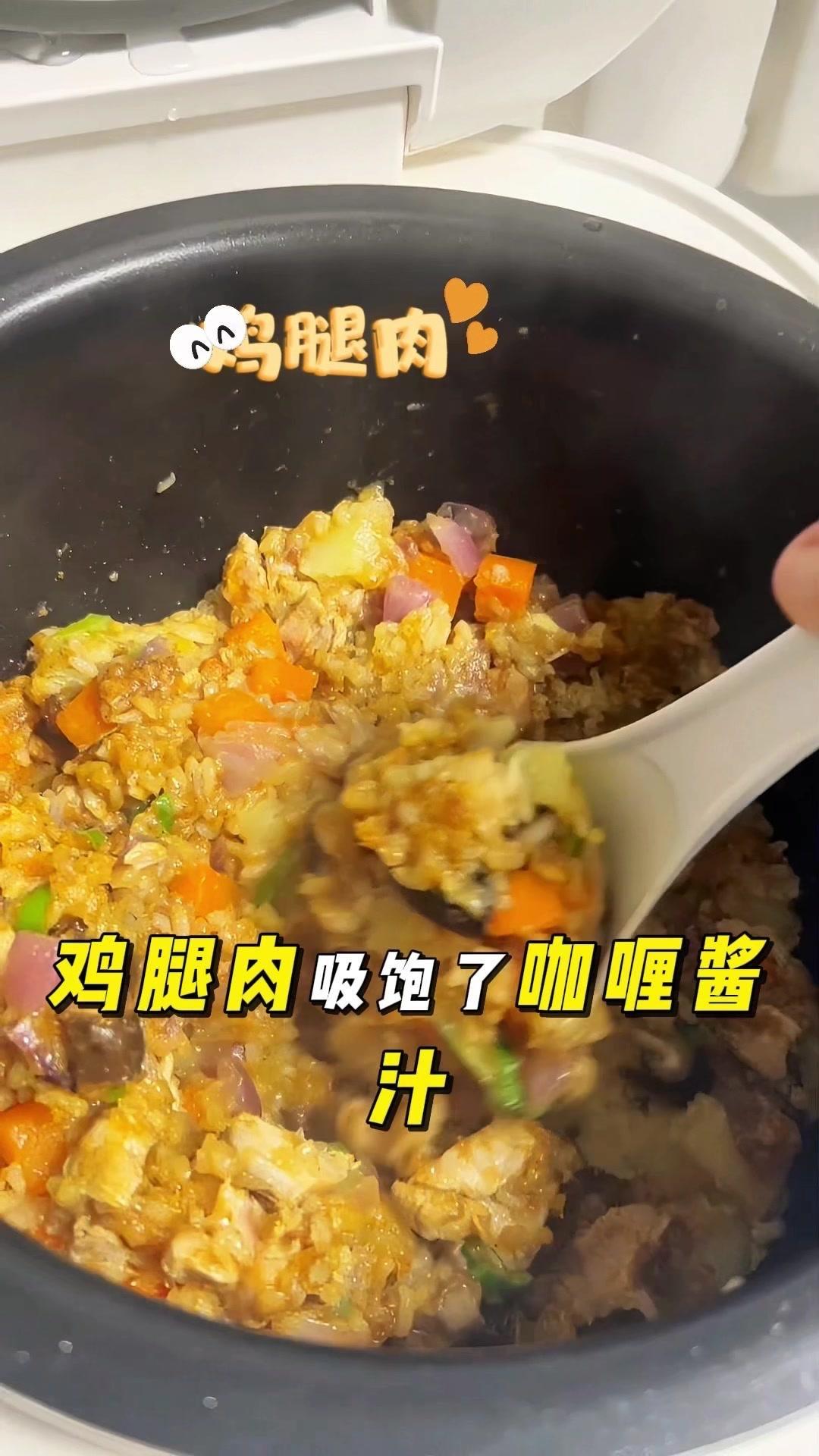 1️⃣小孩不爱吃饭?试试这个电饭锅咖喱饭! 2️⃣传统做法太麻烦?懒人版超简单! 3️⃣做法:电饭锅中间放两块咖喱酱,依次加入切好的胡萝卜、土豆、香菇鸡腿肉和洋葱,倒一圈酱油和少量食用油,盖盖等着。时间到了撒葱花,搅匀就能吃。 4️⃣成品:鸡腿肉吸饱酱汁,软嫩鲜香,土豆胡萝卜绵软入味,小孩都能吃两碗! 美食分享懒人食谱家常菜电饭锅美食