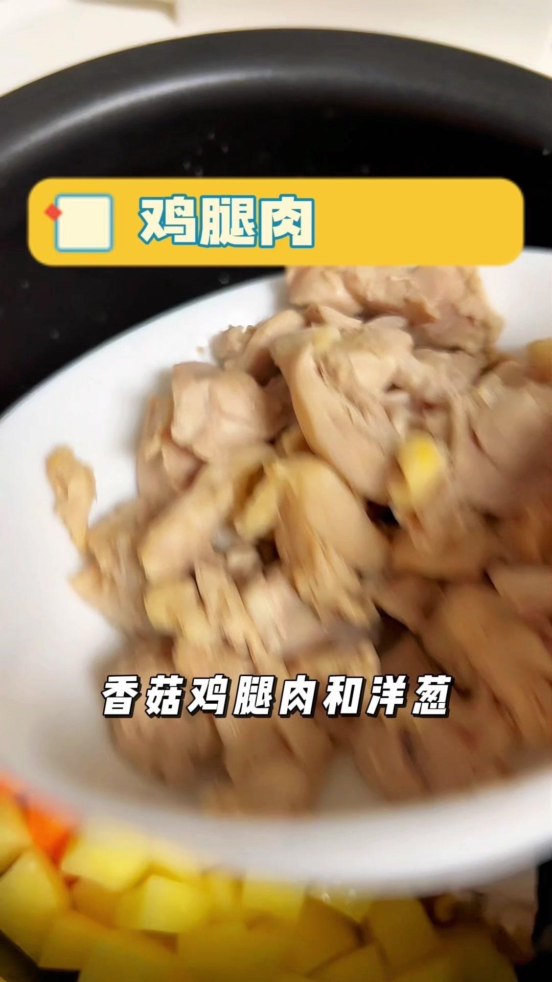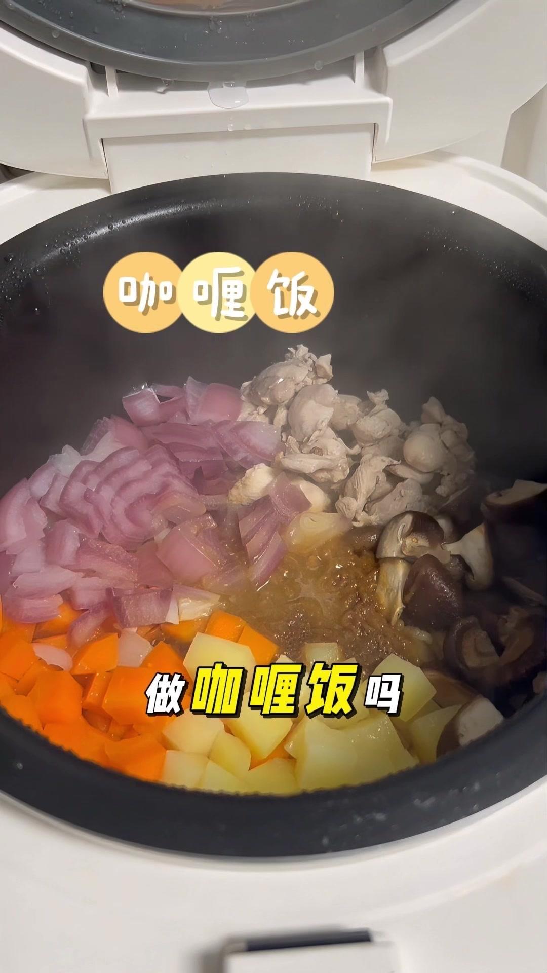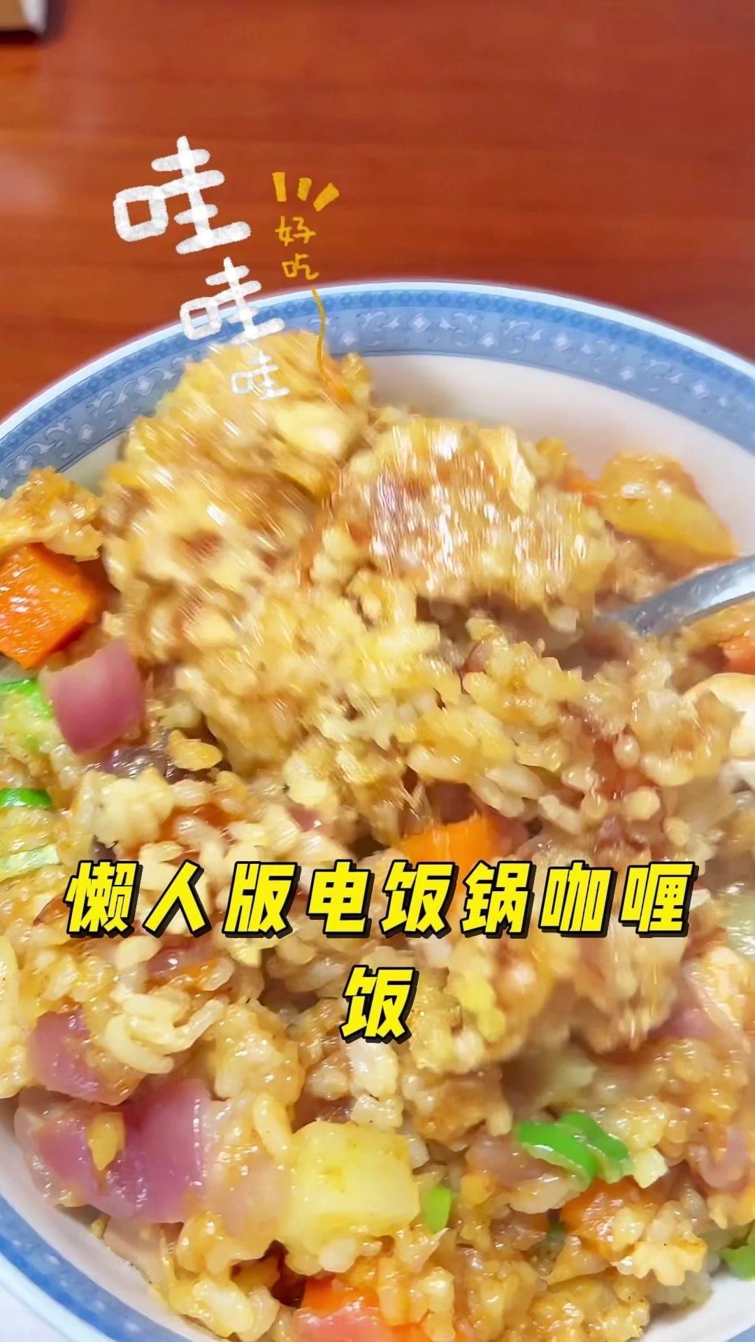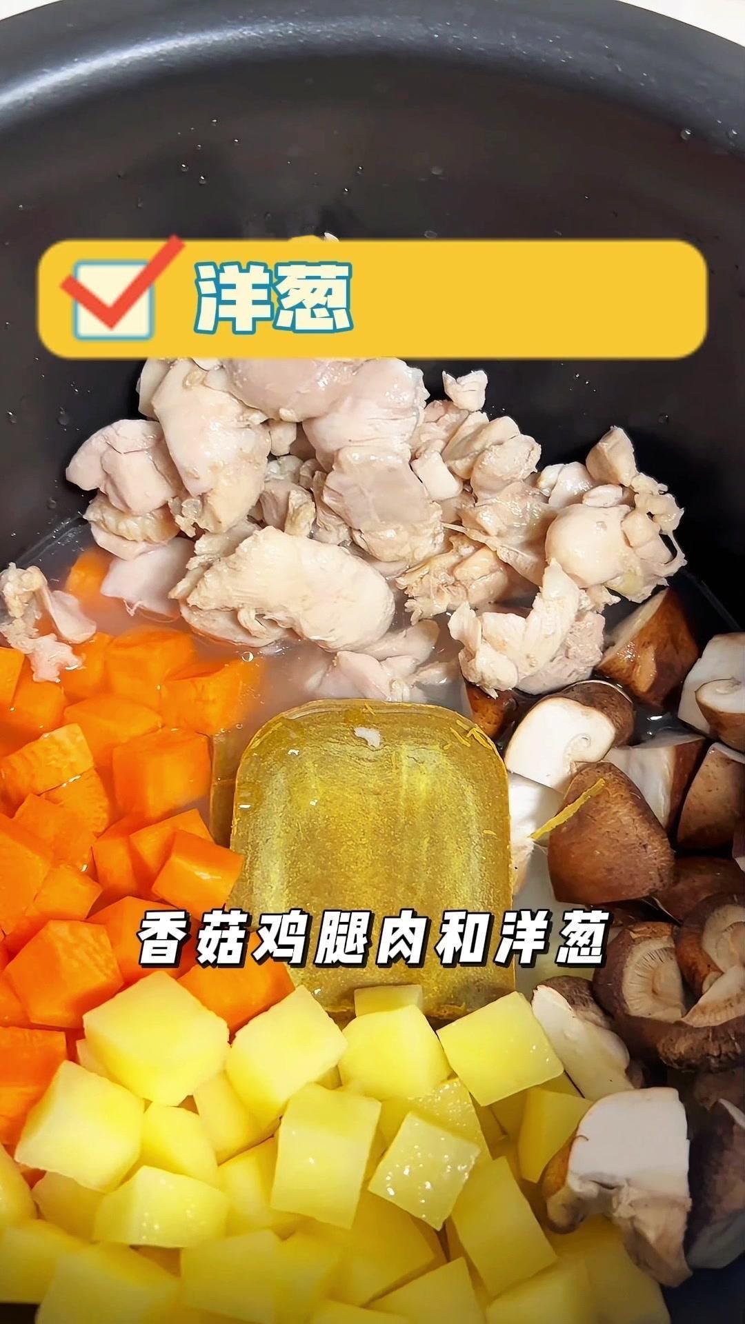 1️⃣小孩不爱吃饭?试试这个电饭锅咖喱饭! 2️⃣传统做法太麻烦?懒人版超简单! 3️⃣做法:电饭锅中间放两块咖喱酱,依次加入切好的胡萝卜、土豆、香菇鸡腿肉和洋葱,倒一圈酱油和少量食用油,盖盖等着。时间到了撒葱花,搅匀就能吃。 4️⃣成品:鸡腿肉吸饱酱汁,软嫩鲜香,土豆胡萝卜绵软入味,小孩都能吃两碗! 美食分享懒人食谱家常菜电饭锅美食