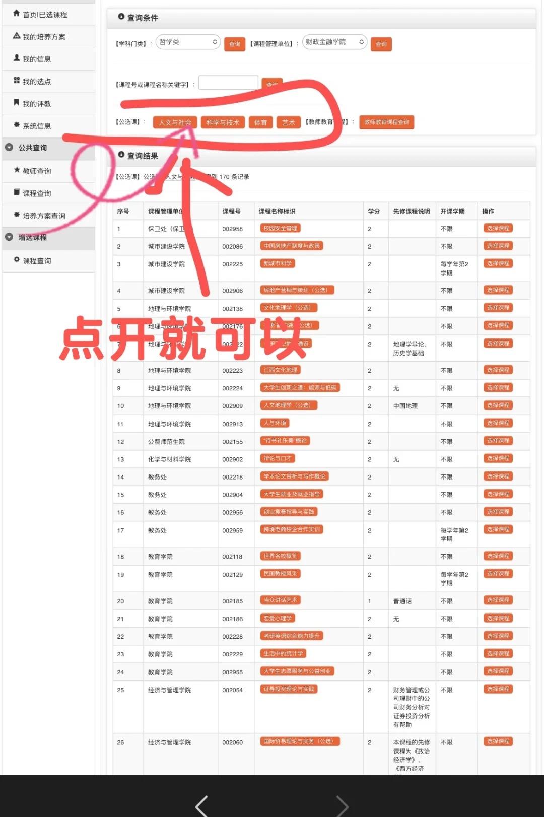 江西师大教务在线选课操作指南和看培养方案 1.要修够你所在专业学分才可以毕业 2.理工类选够人文选修课四分,文科类需要选够科技类选修课四分 3.需要选两分艺术类分数 4.最后一张图为查看专业培养方案方法 5.预选不用抢课,正选抢课,但建议预选先选好想要的,到时候抢起来更方便 不知道为什么评回不了 你们可以查看自己的专业培养方案 看需不需满足2/3 江西师范大学 选课 课程设计 大学绩点 学分
