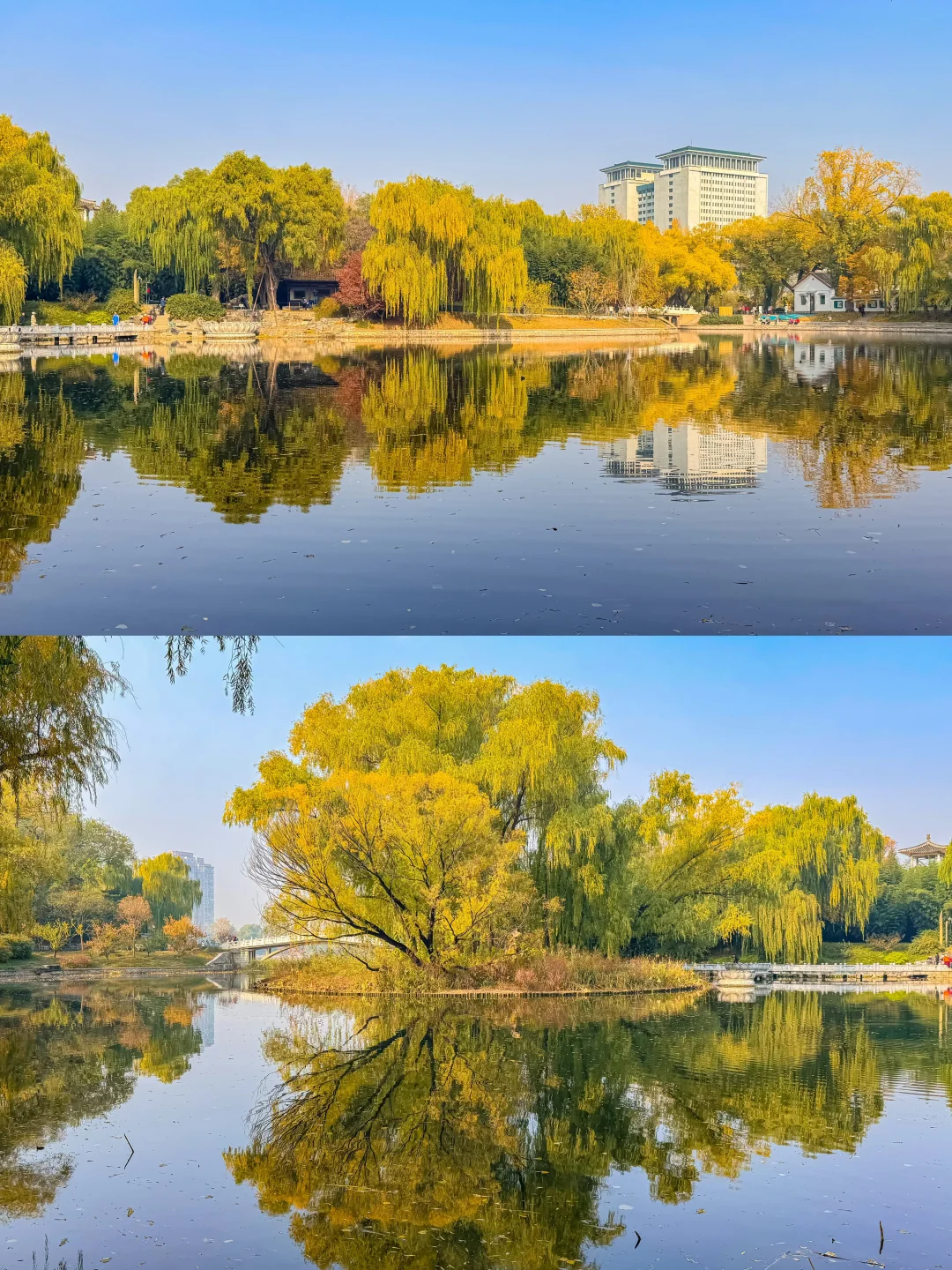 🍂现在的紫竹院正是颜值巅峰期,金黄、绯红、翠绿交织成油画,随手拍都是无滤镜大片‼️抓住深秋尾巴赶紧冲,错过又要等一年~