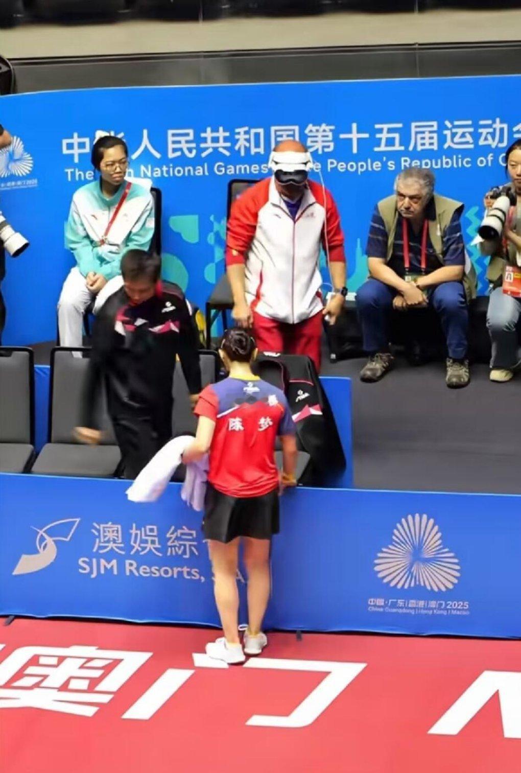 陈梦指导员被疑戴AI高科技眼镜观赛引发热议。其实,戴眼镜的是队医并非指导员,且比赛中没戴,是在陈梦11 - 9拿下胜利后才戴上。这款大概率是VR智能眼镜,核心功能为虚拟现实场景模拟、动作捕捉及数据分析,不具备实时通讯或临场战术指导能力,赛后佩戴是为监测陈梦身体数据 。