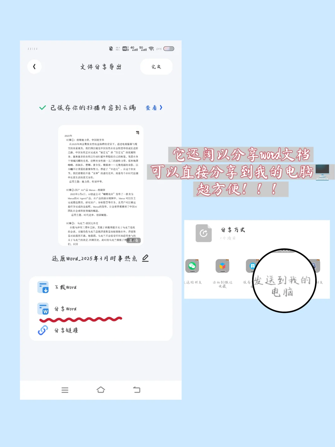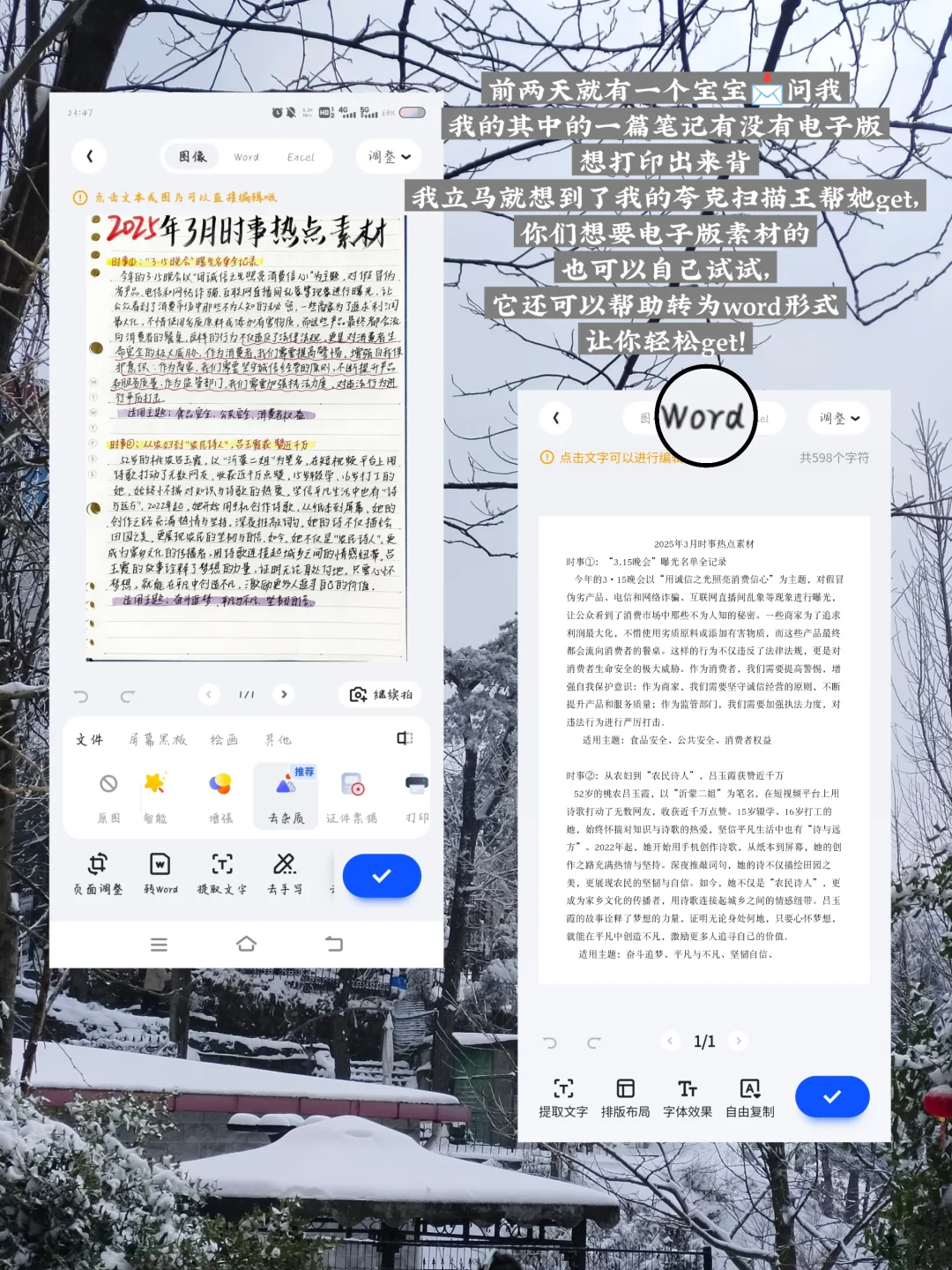 扫描后还能精准提取我的手写文字,还能二次编辑,直接导出word文件,分享到我的电脑上,特别方便!之前我用别的扫描软件总是不能精准的识别我的每一个字🤯🤯,但是这个夸克扫描王总是能精准get我~