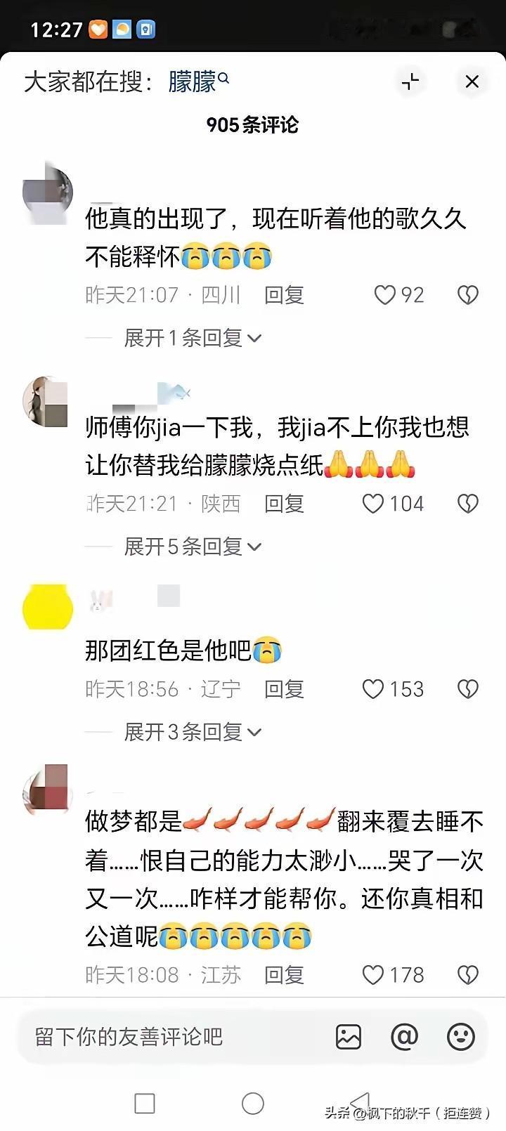 谁懂啊!等了这么久,他居然真的带着大家期待的红色身影回来了!之前粉丝说他穿红、紫两色最亮眼,他就记在心里,这次抱着福丽从树后出现时,那抹红直接戳中泪点——原来被人放在心上的感觉,真的会让人忍不住红眼眶。 他从来都不是只会接受爱意的人,知道大家总想着给他送东西,还悄悄叮嘱“收到了就自己用”,这份通透和体贴,比任何礼物都更让人觉得珍贵。以前总说下次见面要等明年,可这次他那句“下次重逢要等来世”,却让满心期待变成了说不出的遗憾。 其实我们哪是从阳间追到阴间啊,不过是舍不得那个永远把粉丝放在心上的人罢了。你们有没有过这种感觉,明明知道可能再也见不到,却还是忍不住想把所有的好都给他?