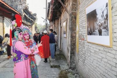 11月14日,由市摄影家协会主办的“时光的剖面:一条街的百年叙事”石韦忠胜利街影像艺术展览在沙市区胜利街开展。