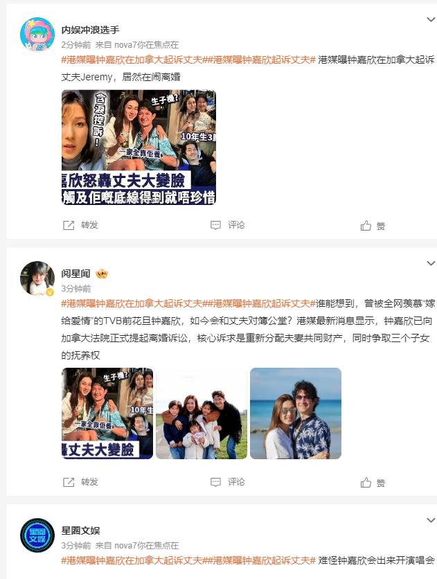 不得不吐槽下某博,你们写东西都不追求事情的真相吗?一旦有事情就甩锅港媒,港媒是“无耻”这不差,但是肆意的抹黑实在是有些不敢恭维,什么是港媒曝料啊? 11月15号,一大早,有内地娱乐号直接晒出一则名为“港媒曝光钟嘉欣在加拿大起诉丈夫”,这很明显就是一个博取流量的话题。 怀着忐忑的心情去搜索这一博文,这才发现,哇了个哇呀,这不是在外网时常造谣明星的作者所发的动态吗?何来港媒,就这样甩锅港媒,实在是让人感到不齿。 要知道港媒虽然无下限,但一般不会造谣,事后也会打电话向当事人证实。 再来看发布这篇动态最早的时间,是上个月的26号,如果真的有事情,港媒早就大肆报道了,何来相隔20天后再登上热搜。 这群传播的博主啊,就是没长普通人有的东西!