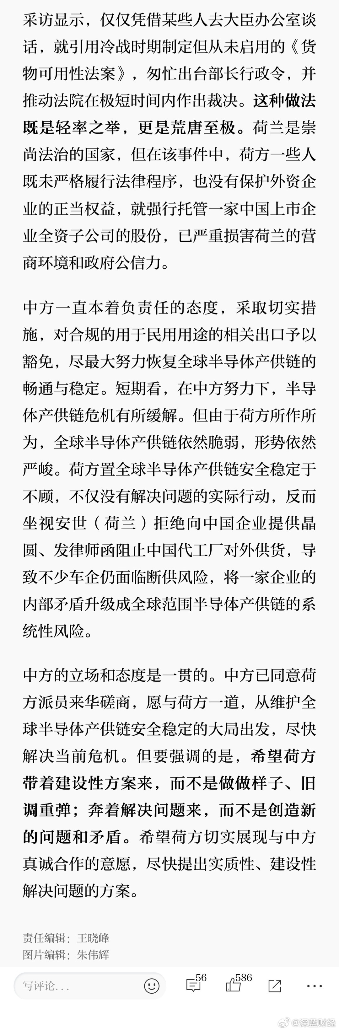 荷经济大臣称不后悔安世半导体决定,商务部回应强烈不满