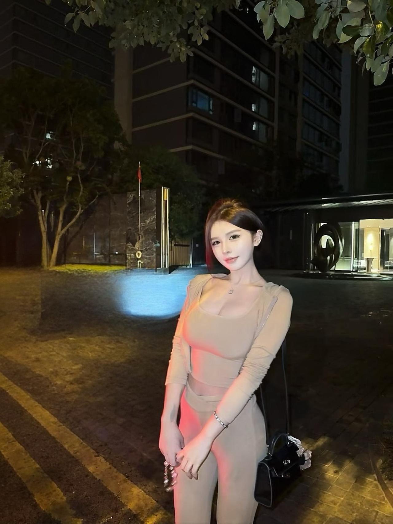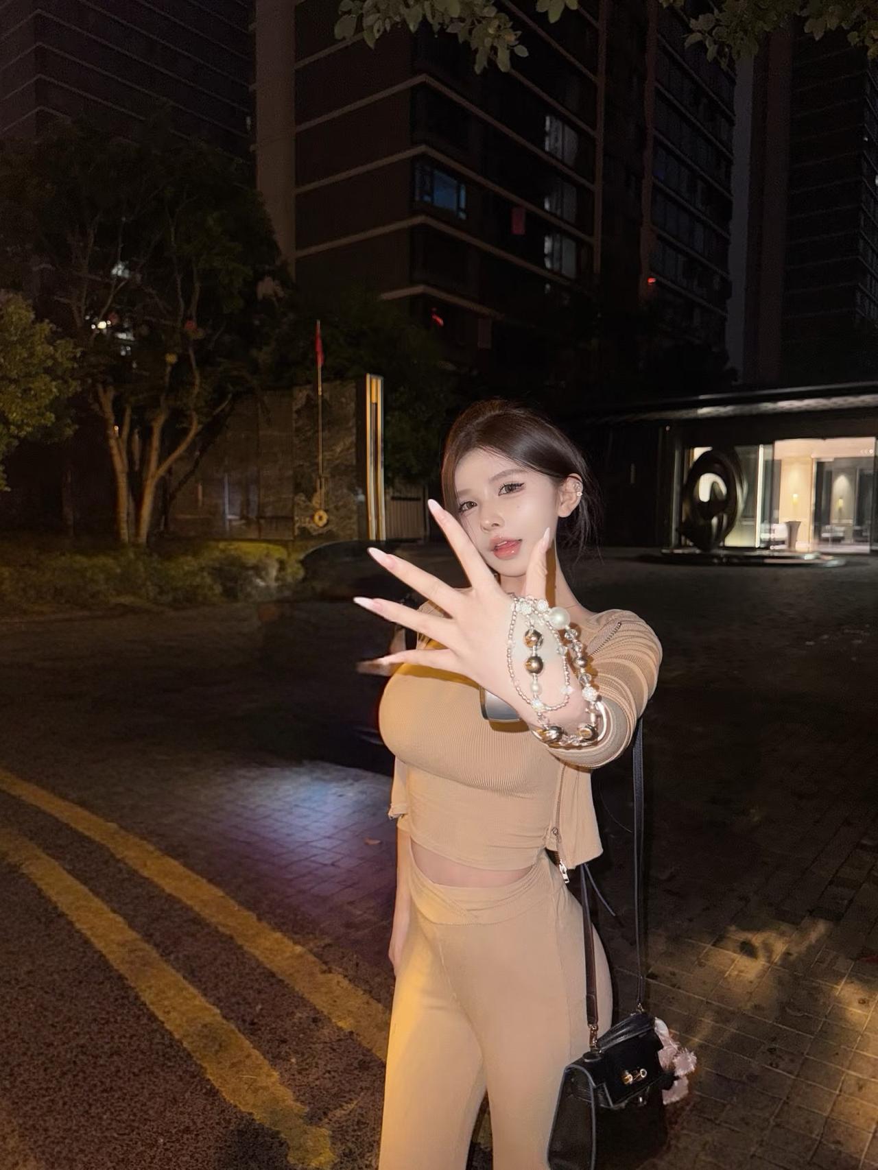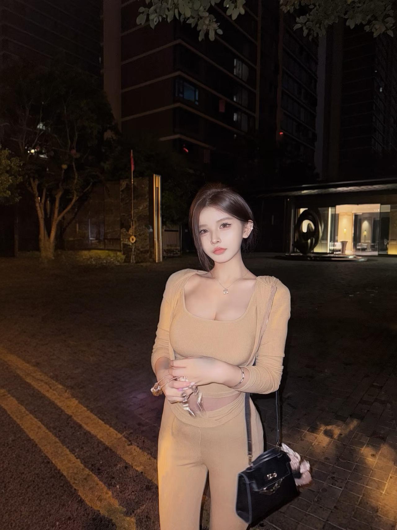 都市夜骑:用骑行点亮城市夜晚深夜的城市街头,她身着专业骑行装备,浅色花卉上衣