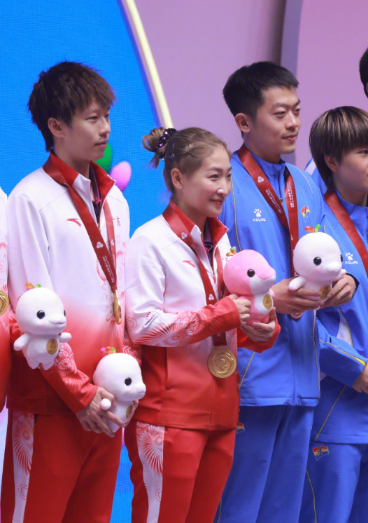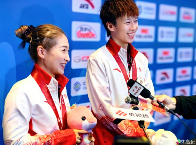 刘诗雯表示:第六次全运之旅,很荣幸能和林高远一起拼下这枚混双金牌,谢谢我的搭档,谢谢广东队的培养和守护,这个冠军是属于广东乒乓球队所有人的,也属于所有不曾放弃的我们。