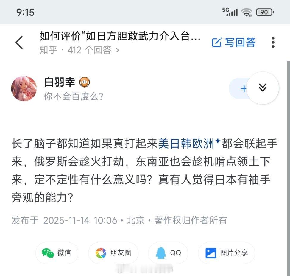 天下乌贼 3 2025-11-15 23:04 五大战区除了中部战区属于支援和总预备队性质。其余每个战区对应一个进攻方向。东部战区对应台海,北部战区对应韩国和日本,南部战区对应越南和东南亚,西部战区对应印度。俄罗斯嘛,未来十年也对不上中国北部战区一半的作战力量。要知道,这些战区对应的对手,是我们料敌从严的。以南部战区的对手看,用一个战区对待越南真的是杀鸡用牛刀了。真对韩国动手了,你说朝鲜不下场和韩国的叛徒算总账?国家为什么不收复台湾?只是在评估,就是什么时候,我们收复台湾就和当年打越南的时候一样,不需要动员,局部动员都不行。到了这个时候,就是收复台湾的时候。就是说收复台湾,大家坐在电视机前看一下现场直播的情况,就是要这么写意轻松,那就是收复的时间。