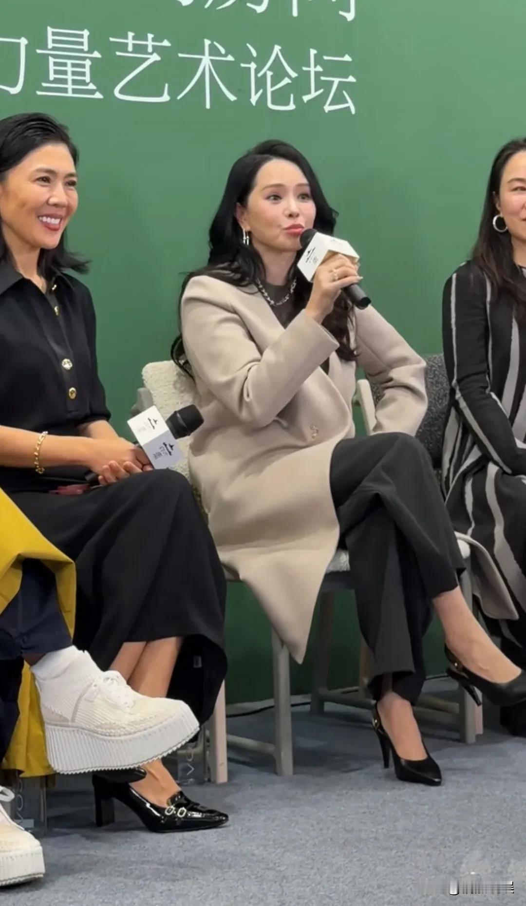 怪不得网友说“金钱就是力量”,有时感觉这话还真是没错。 伊能静现身上海参加活动,尽管发际线有点高,但是一头卷发又黑又密,肤色很白,身材胖瘦得宜,穿着白色长大衣脚踩高跟鞋,知性优雅! 仔细看她的脸,说话时面部皮肤坑坑洼洼很明显,嘴角有点下垂,颈纹也挺显年龄的,整张脸胶感很重。 虽说不能冻龄,但是一年七位数的付出,让她看起来还是比同龄人年轻一点,只是没有网上说的那么神奇。 不过,她的一张嘴确实能说。 看她发言,很有自己的主见和思想,口才流利,思绪敏捷,出口成章,这一点,就特别佩服她![赞]