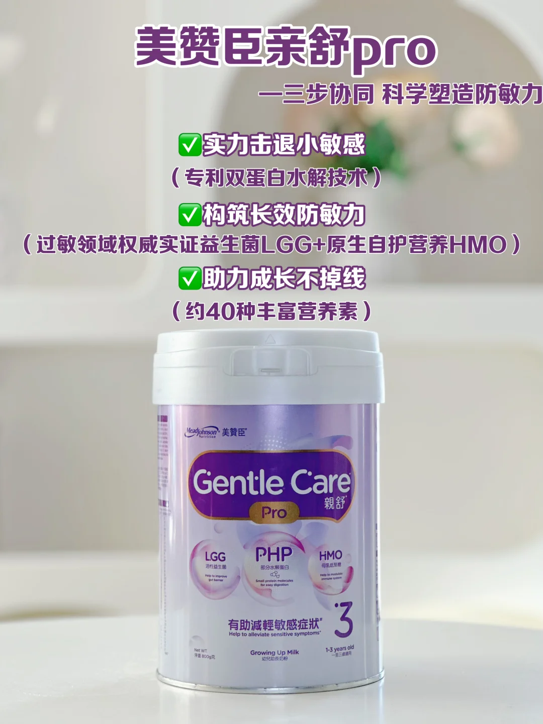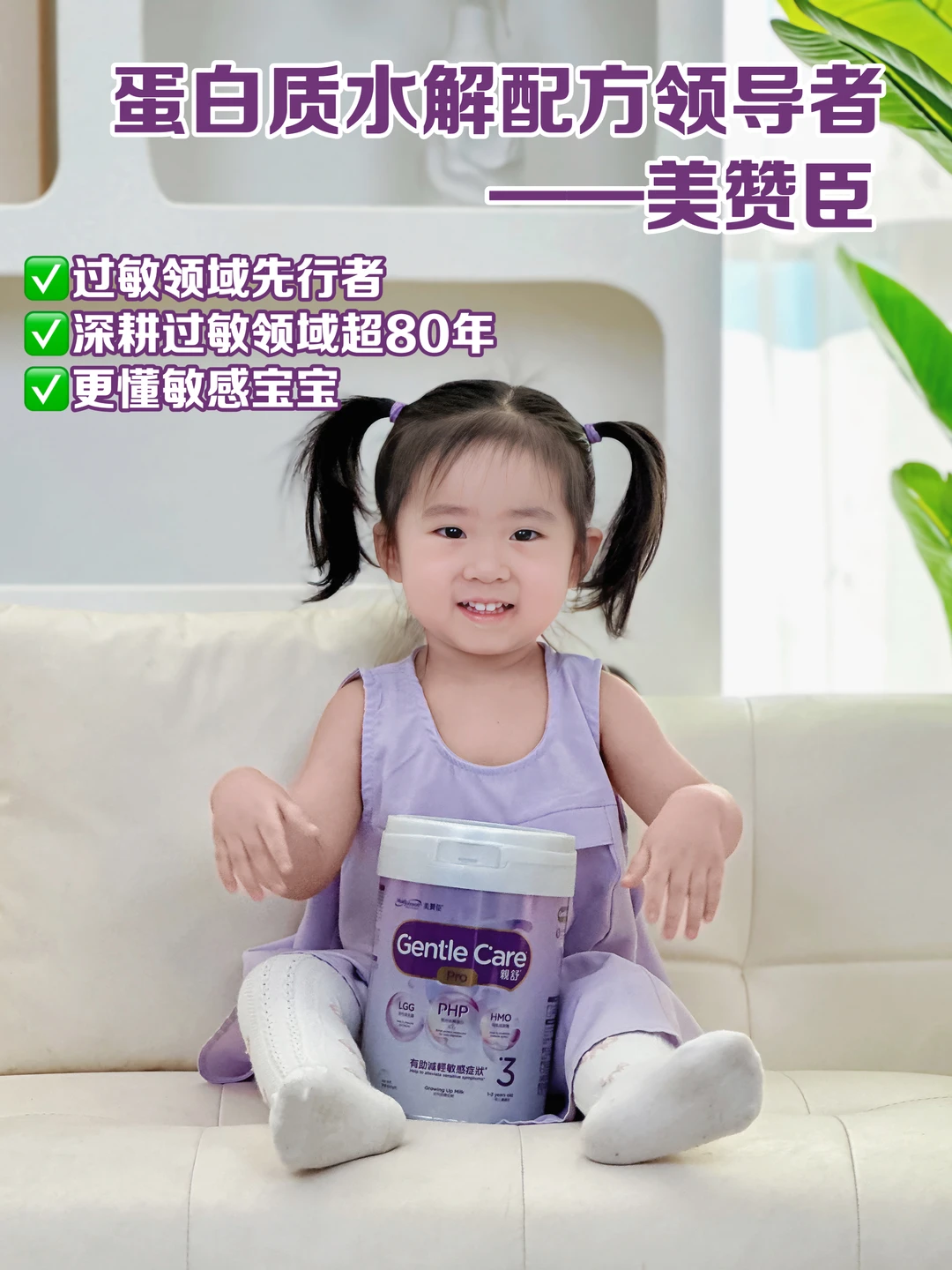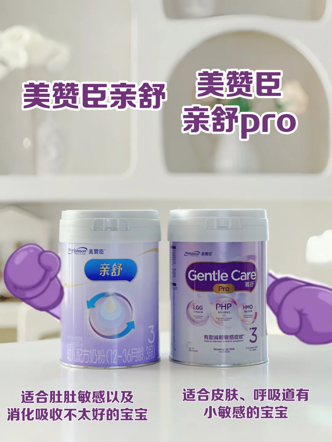 [向右R]综合对比下来,我给宝宝选择了[紫色心形R]美赞臣亲舒pro ,它还额外添加了权威防敏益生菌LGG加强防敏护盾,[害羞R]目前卫健委公布的婴幼儿可食用菌株名单仅17种,LGG还是首批获得认证的。[萌萌哒R]搭配母乳低聚糖HMO (2'-FL),防敏力拉满!特别适合我家这种皮肤和呼吸道敏感的宝宝。