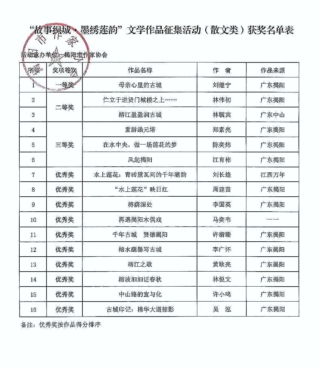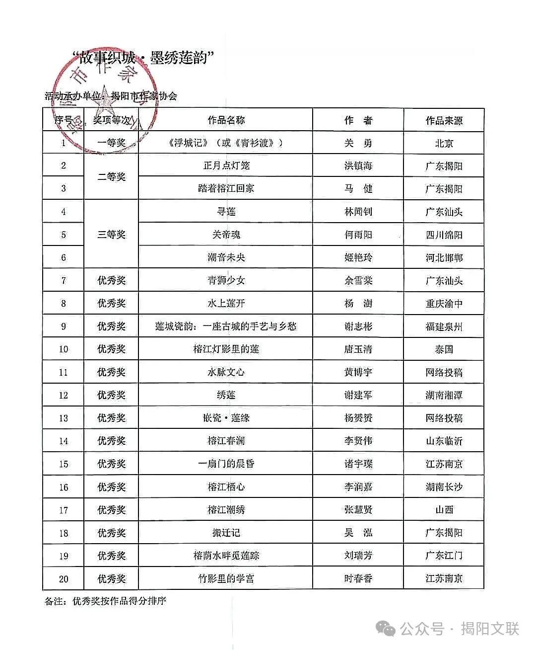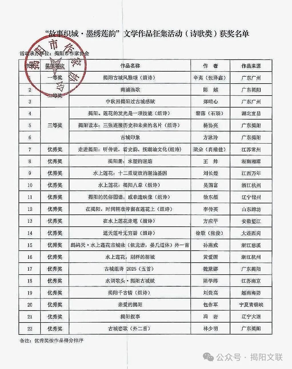 颁奖具体时间、地点及参与方式,将第一时间通过“揭阳文联”“文韵揭阳”“观潮微访”等官方及主流平台发布,敬请关注。