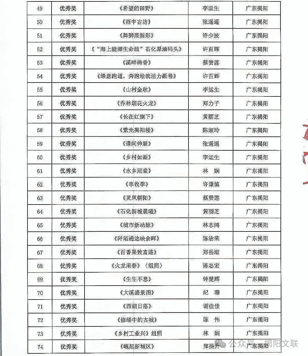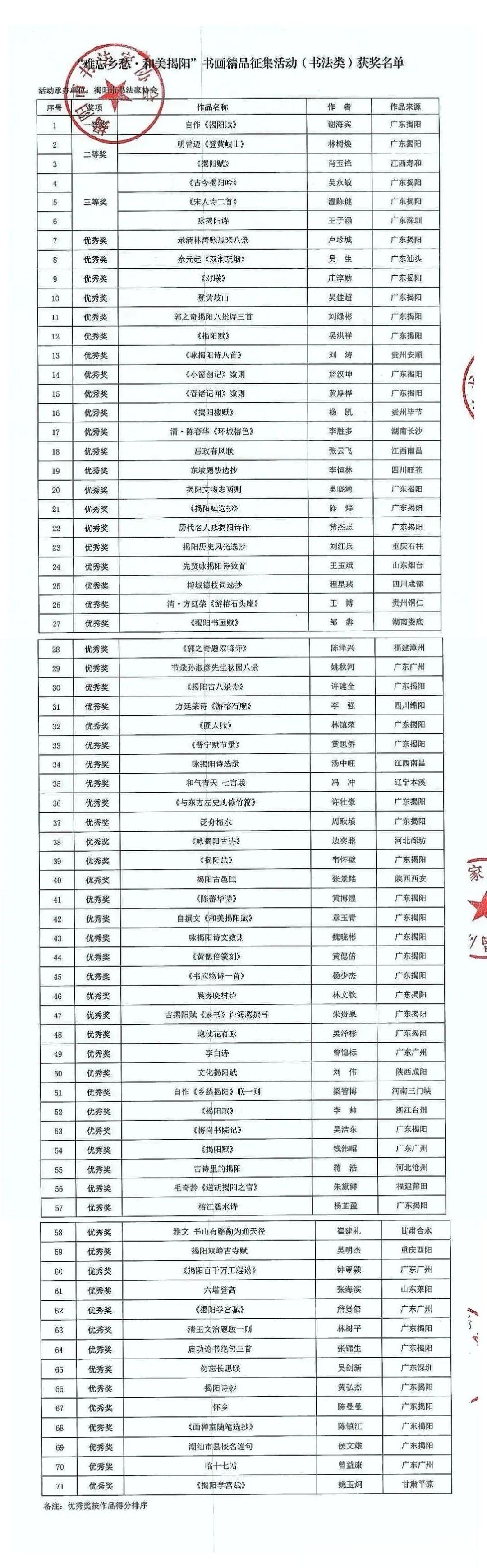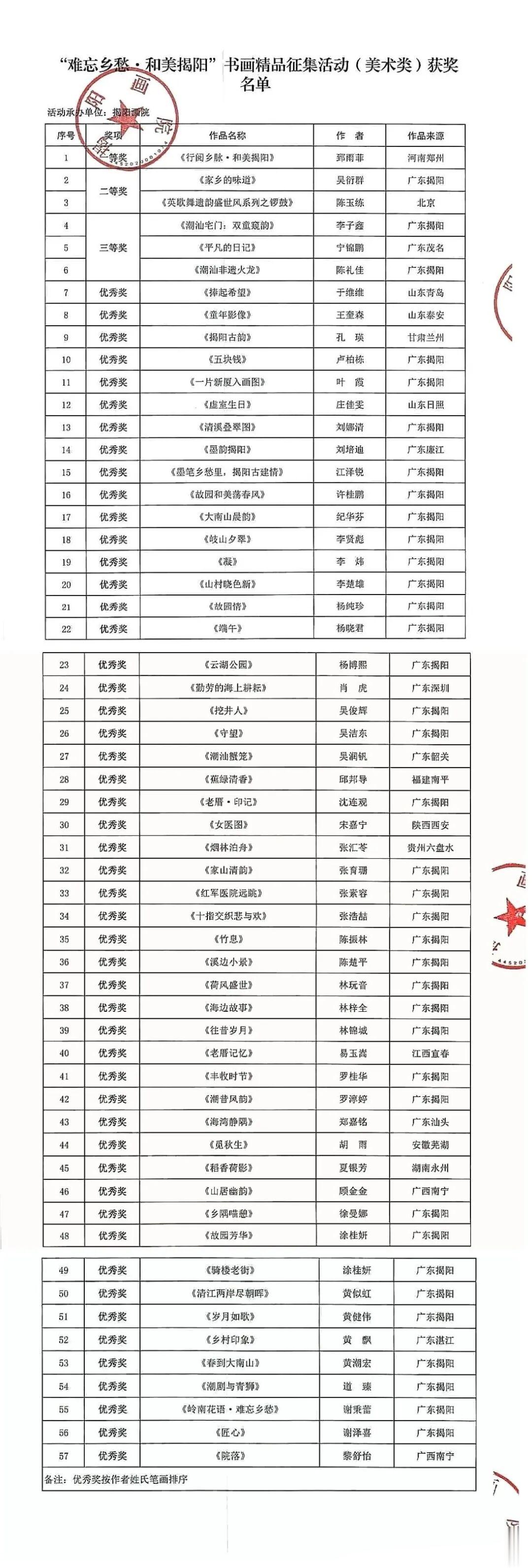 “难忘乡愁·和美揭阳”书画精品征集活动获奖名单