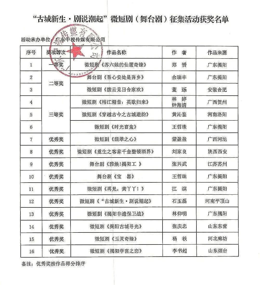 “古城新生·剧说潮起”微短剧(舞台剧)剧本征集活动获奖名单