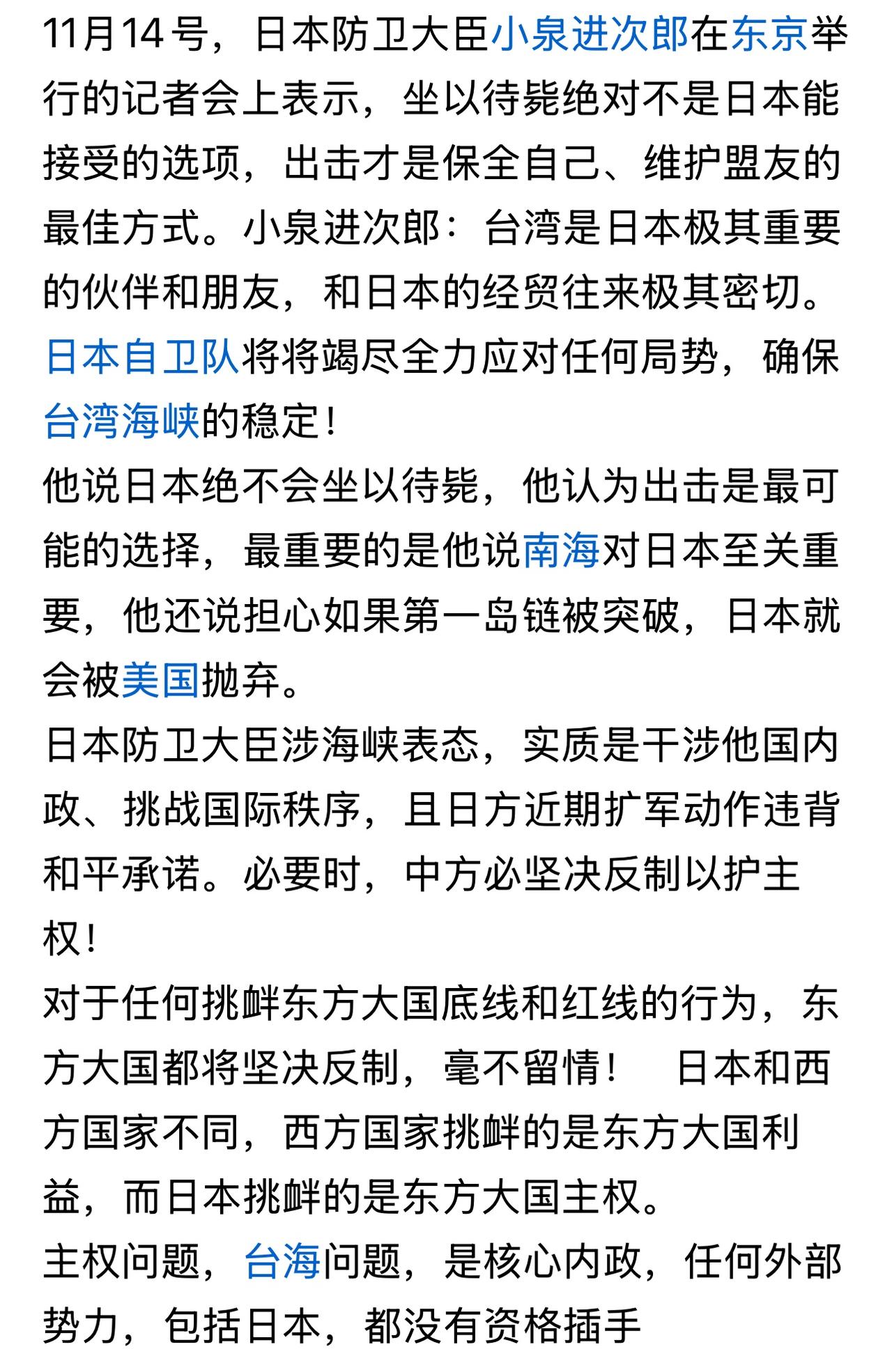 日本防卫大臣,小泉进次郎再次强硬发声,称台湾有事日本必定出击!!!!