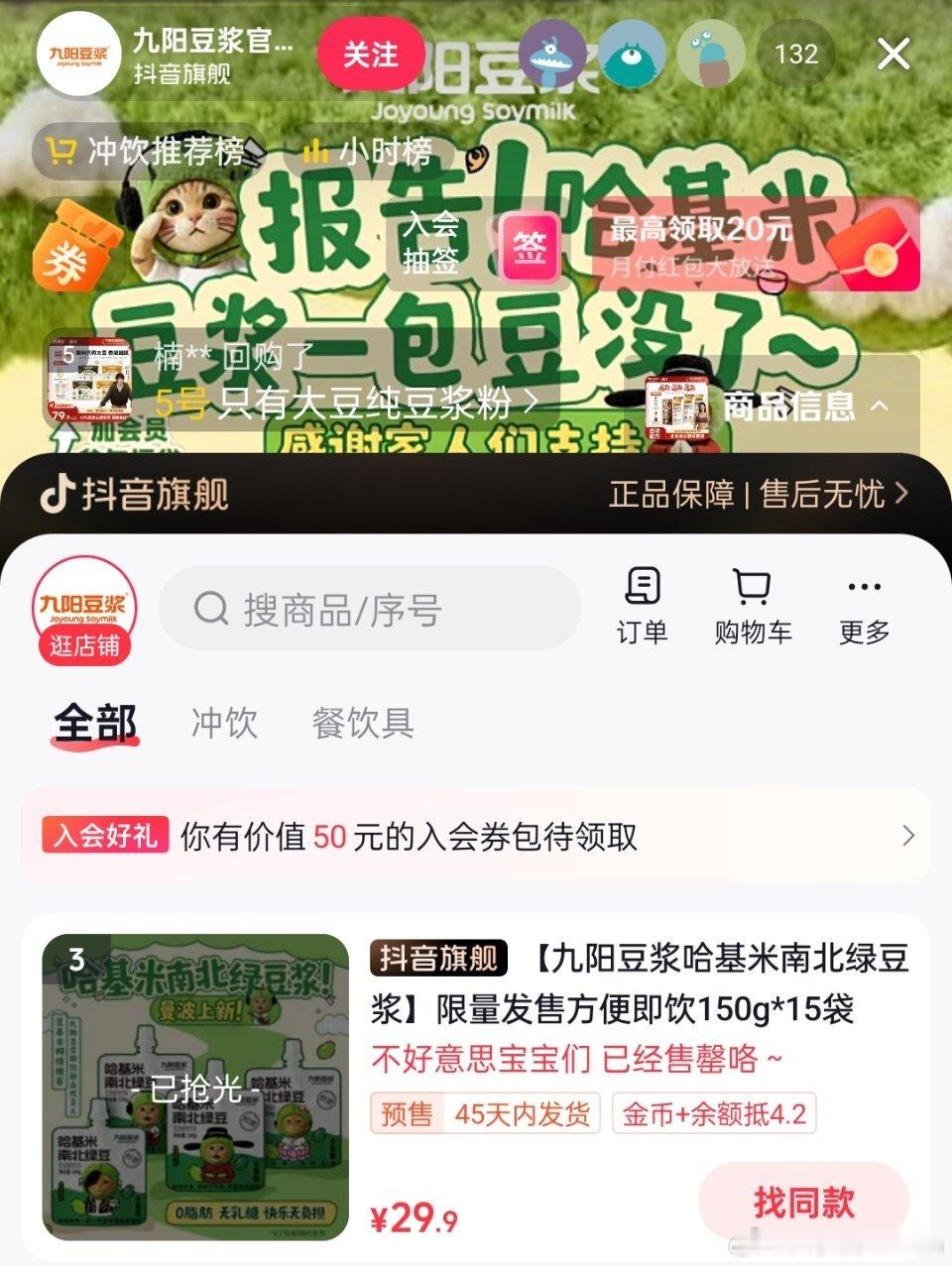 九阳的哈基米南北绿豆浆已经全部售罄了,预购订单已经排到明年去了。之前做哈基米薯片