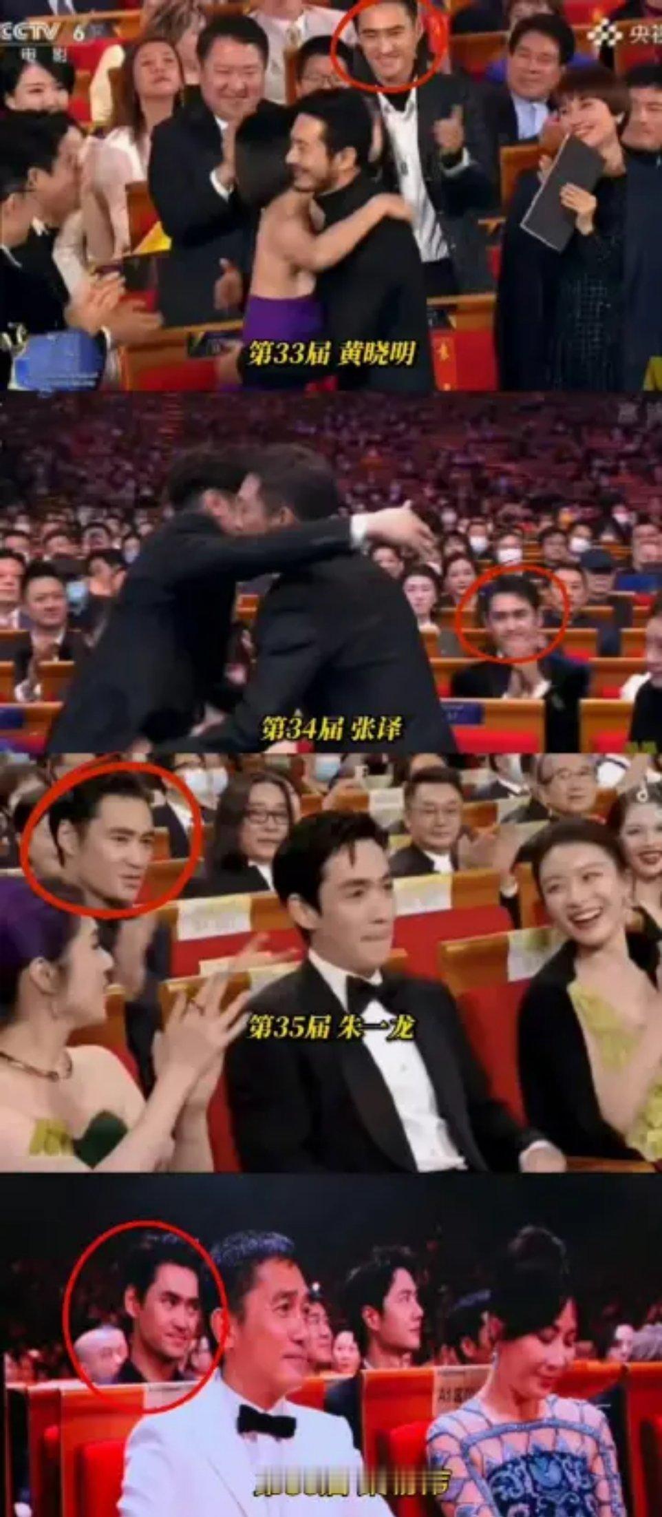 金鸡奖最佳男主真的是袁弘定律吧黄晓明(第33届)张译(第34届)朱一龙(第35届)梁朝伟(第36届)易烊千玺(第38届)都是坐在袁弘的前面