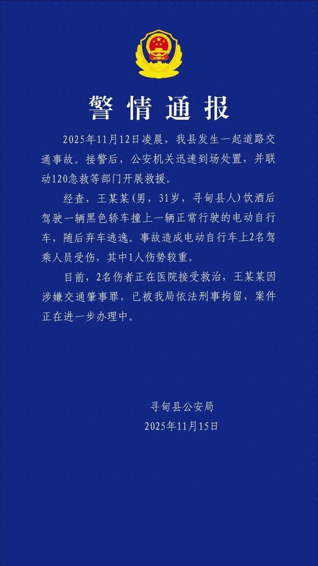 王某某(31岁)酒后驾车致2人受伤!云南警方发布警情通报