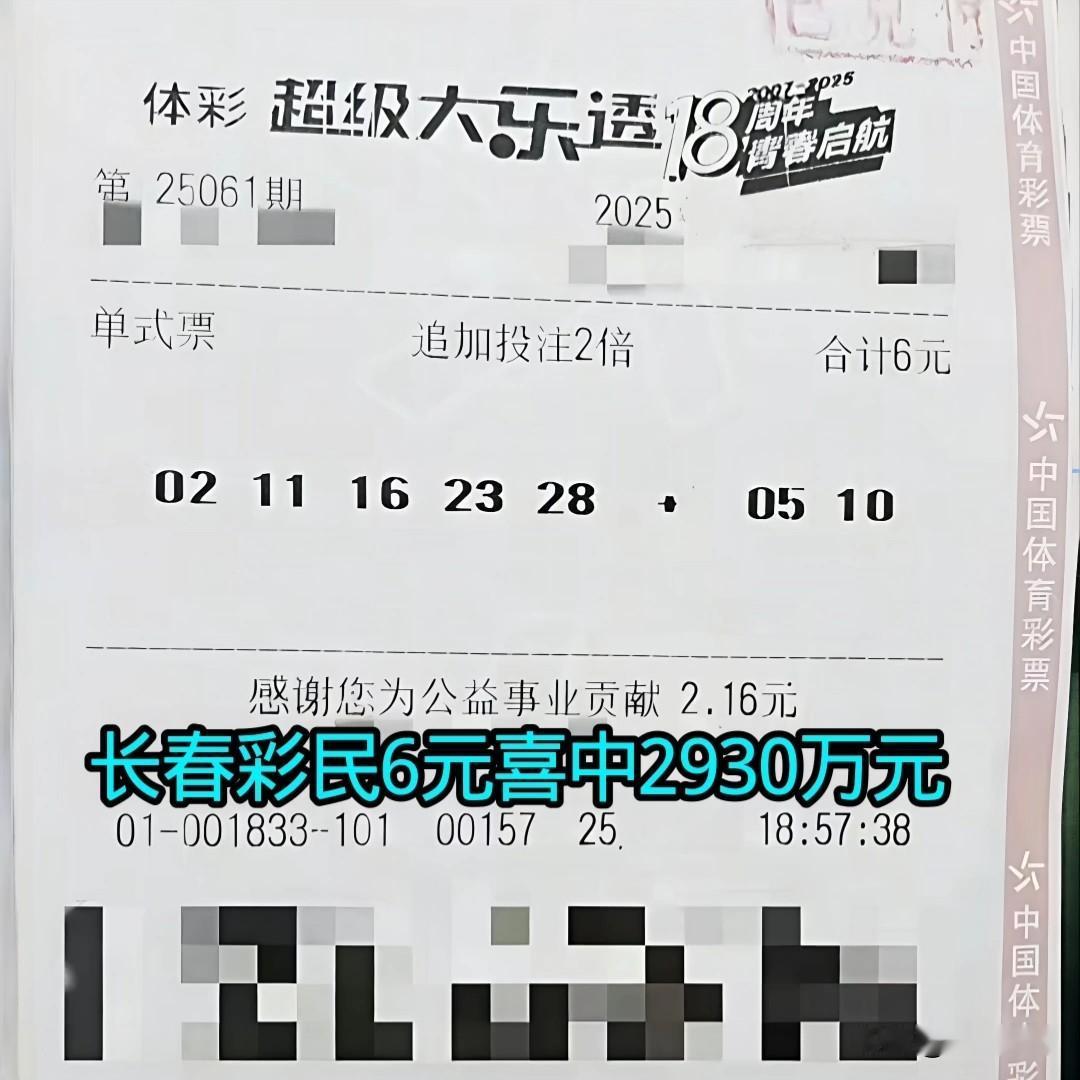 吉林长春彩民6元买体育彩票,喜中一等奖2930万元,这选号技术太厉害了,单挑一组就中一等奖2930个W,会不会是主任的亲戚朋友?轻轻松松就拿下大奖,领了这么大一笔奖金一生可以躺平了...