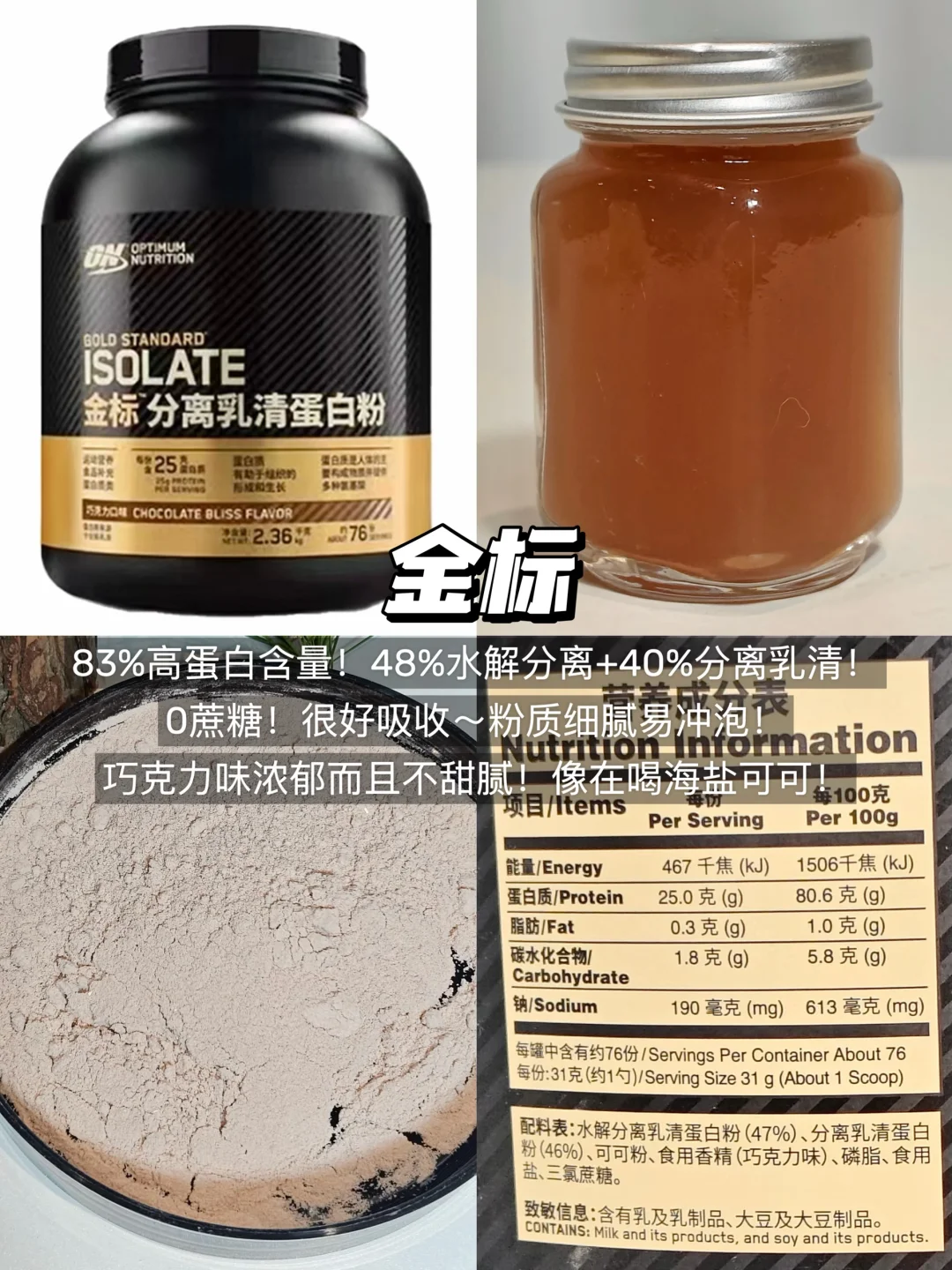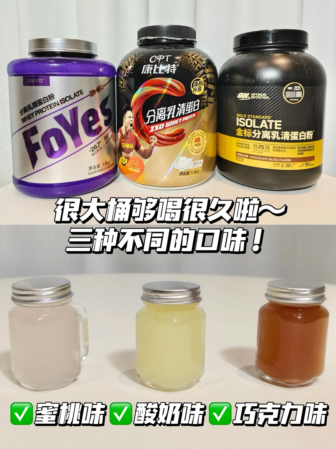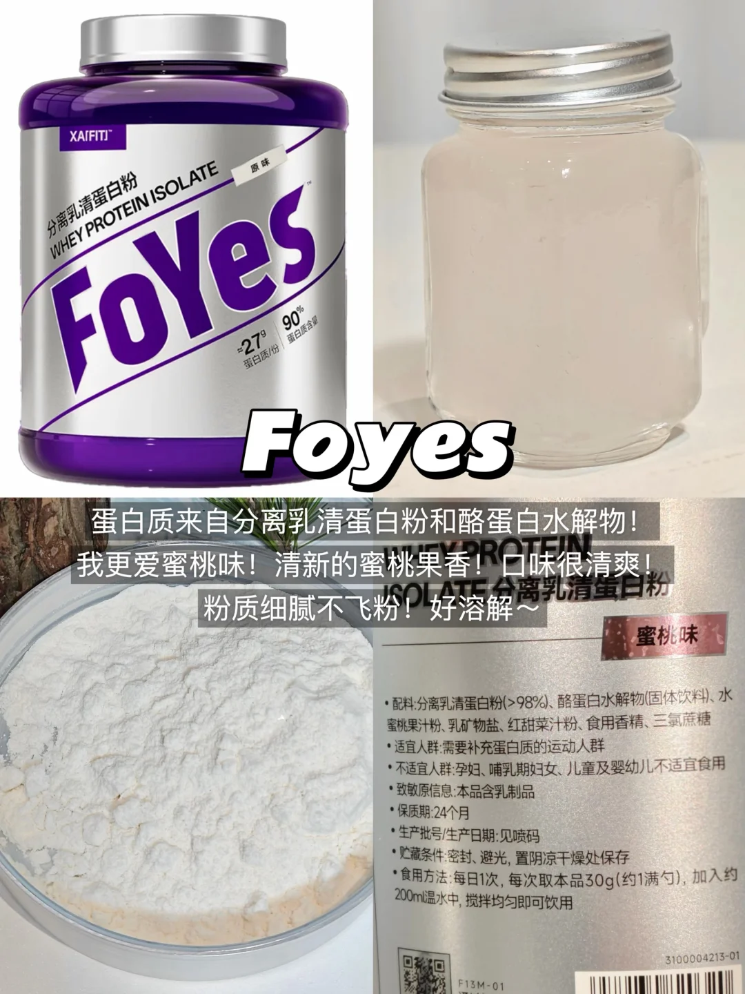 蛋白质来自分离乳清蛋白粉和酪蛋白水解物!我更爱蜜桃味!清新的蜜桃🍑果香!口味很清爽!粉质细腻不飞粉!好溶解~