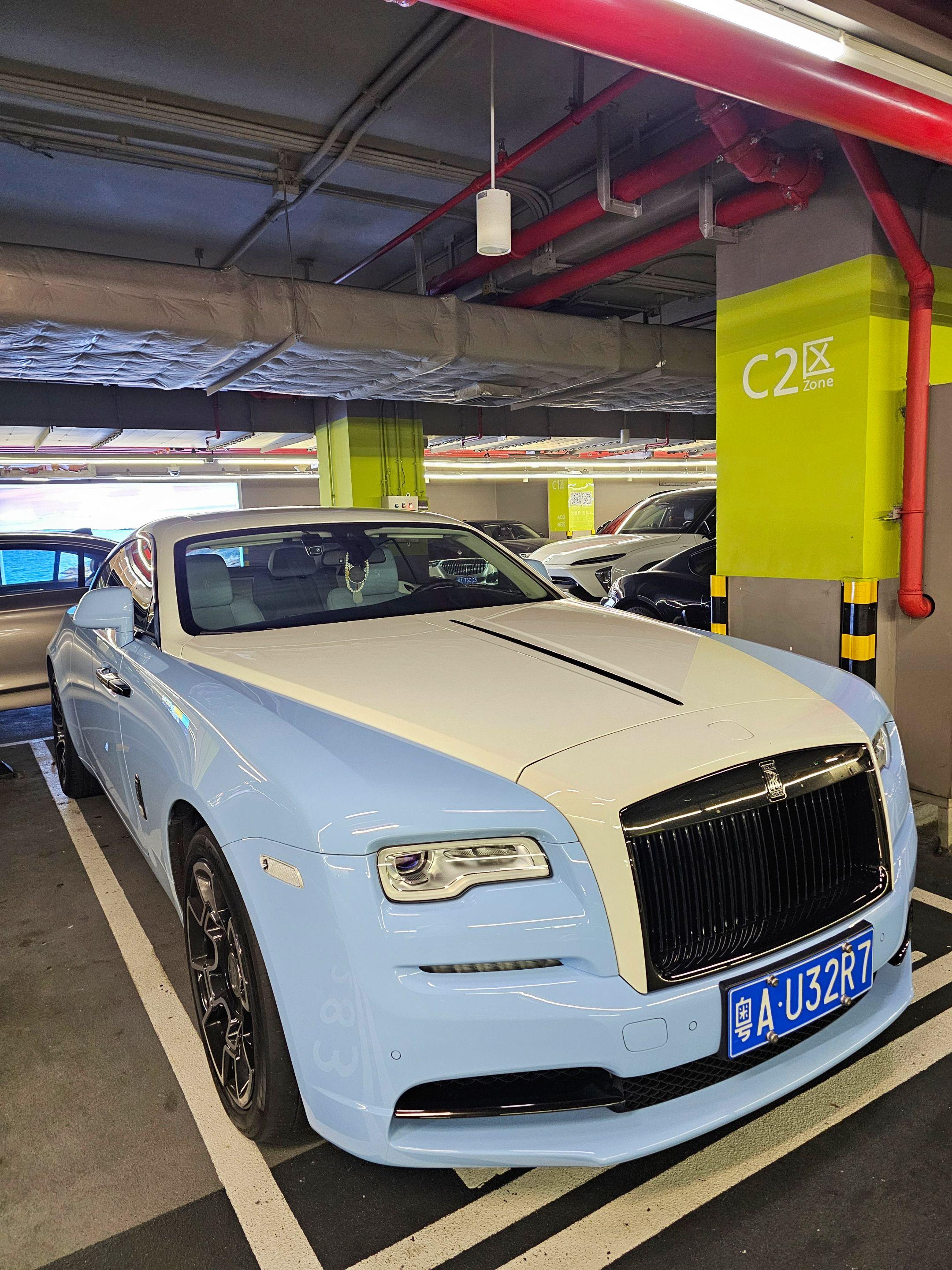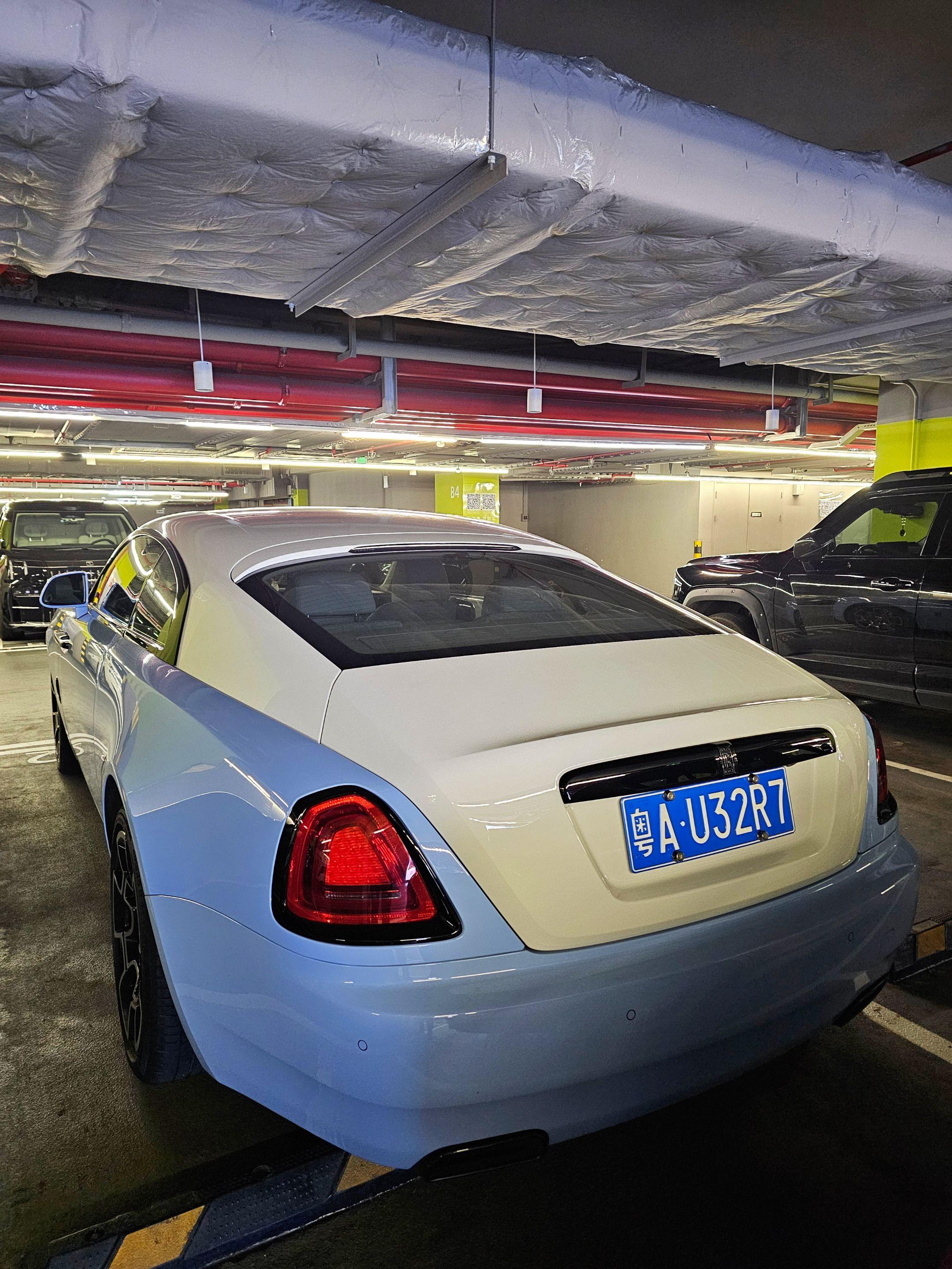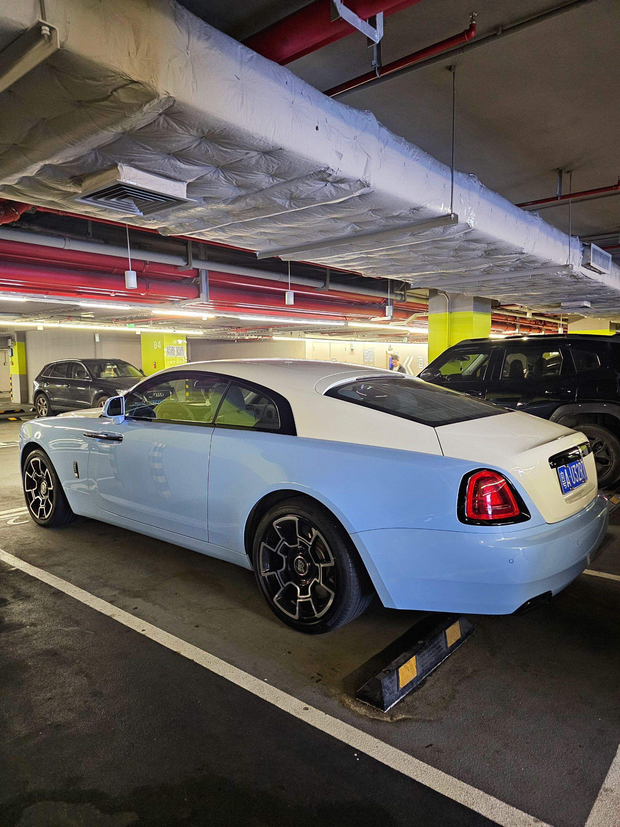 在某地库偶遇大佬座驾劳斯莱斯魅影Black Badge,双拼色的外观黑...