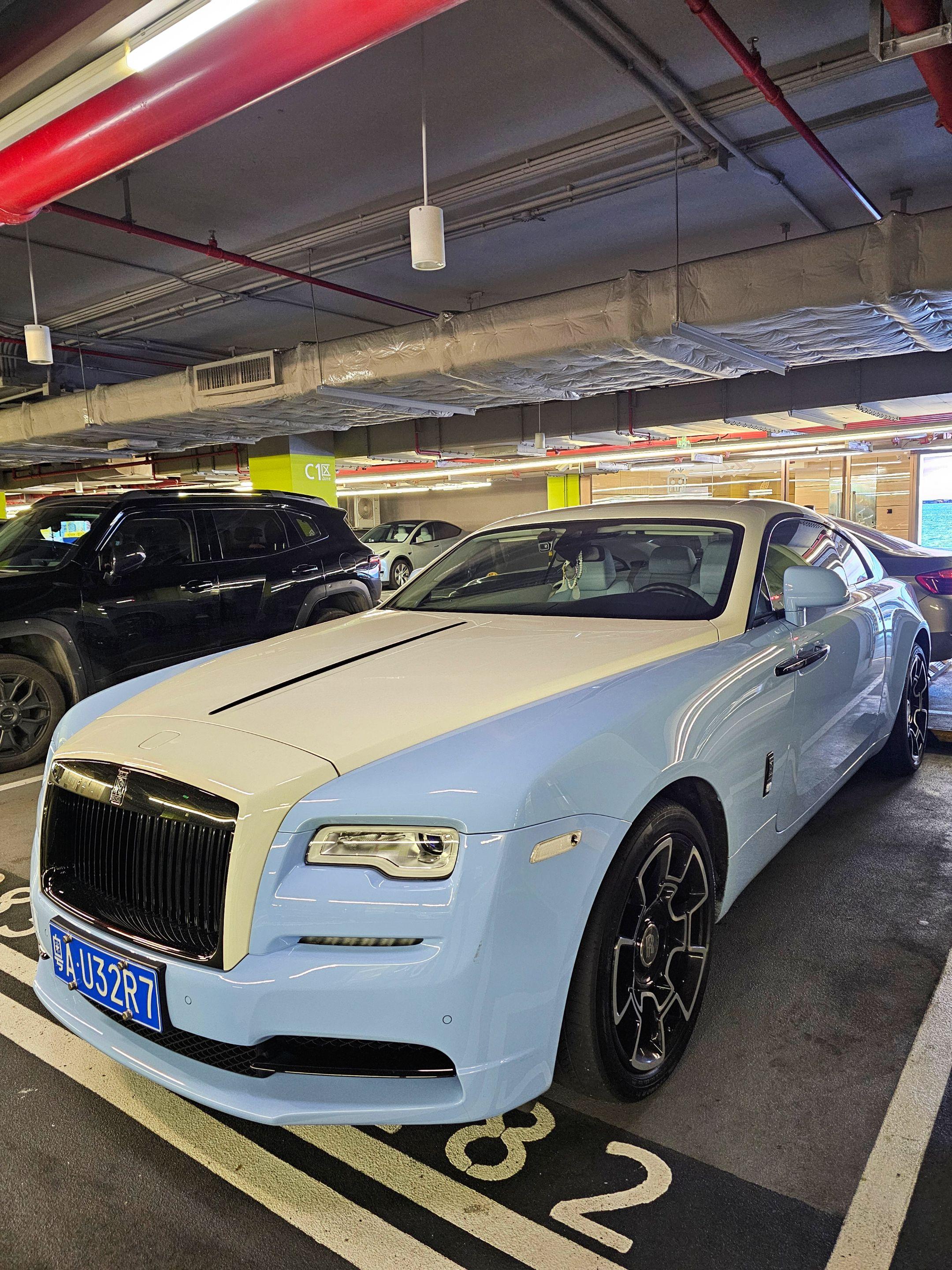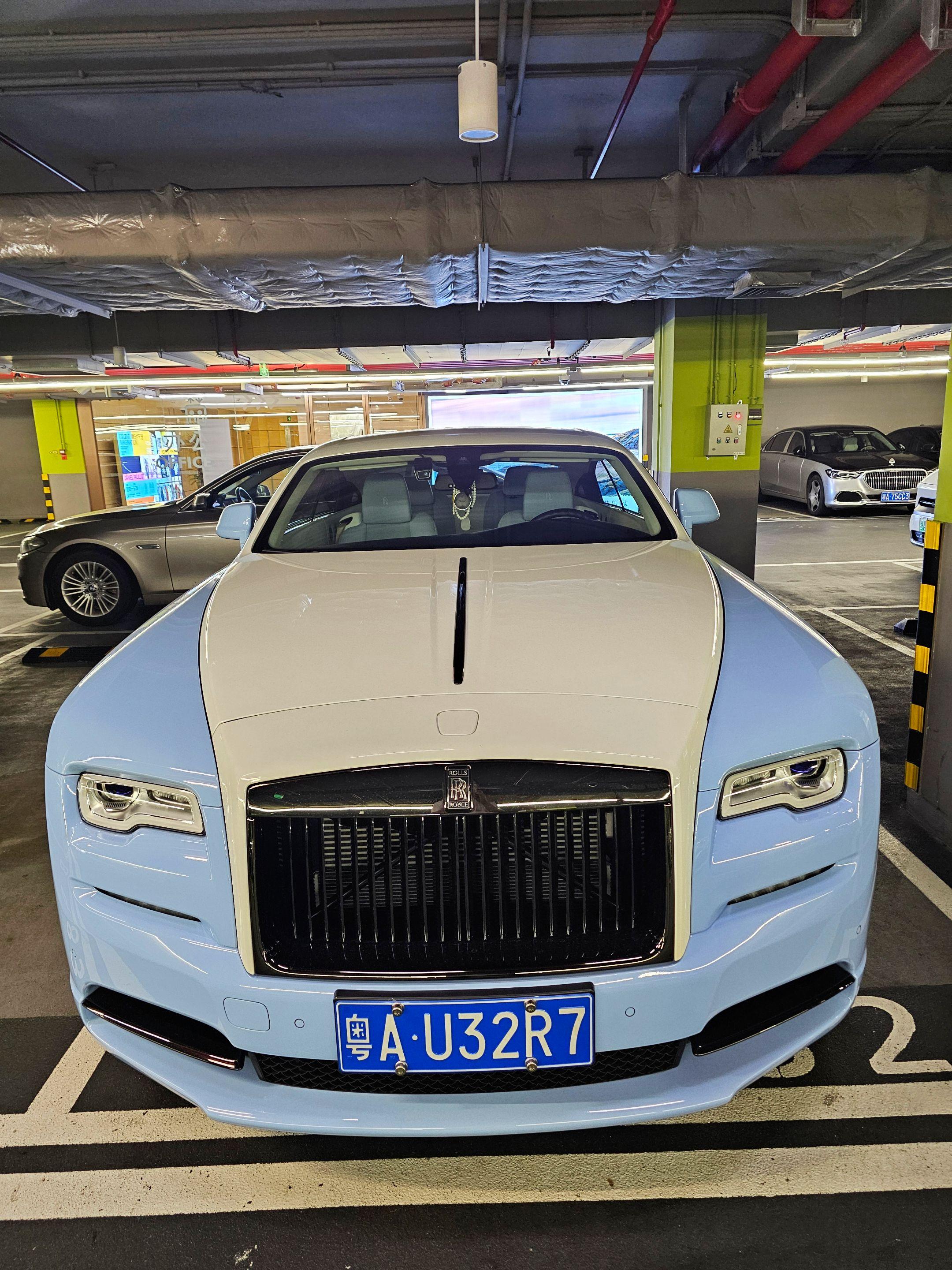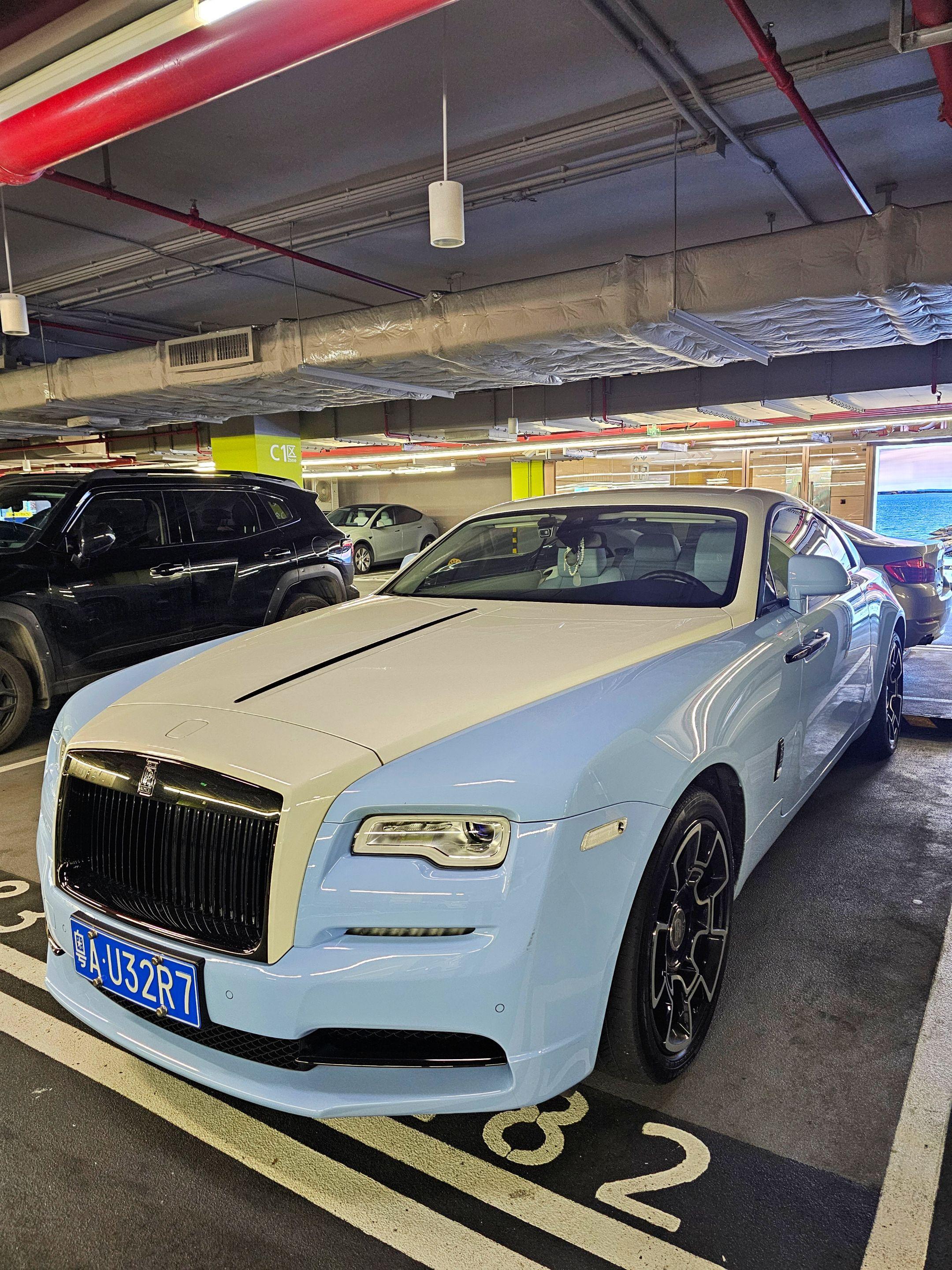 在某地库偶遇大佬座驾劳斯莱斯魅影Black Badge,双拼色的外观黑...