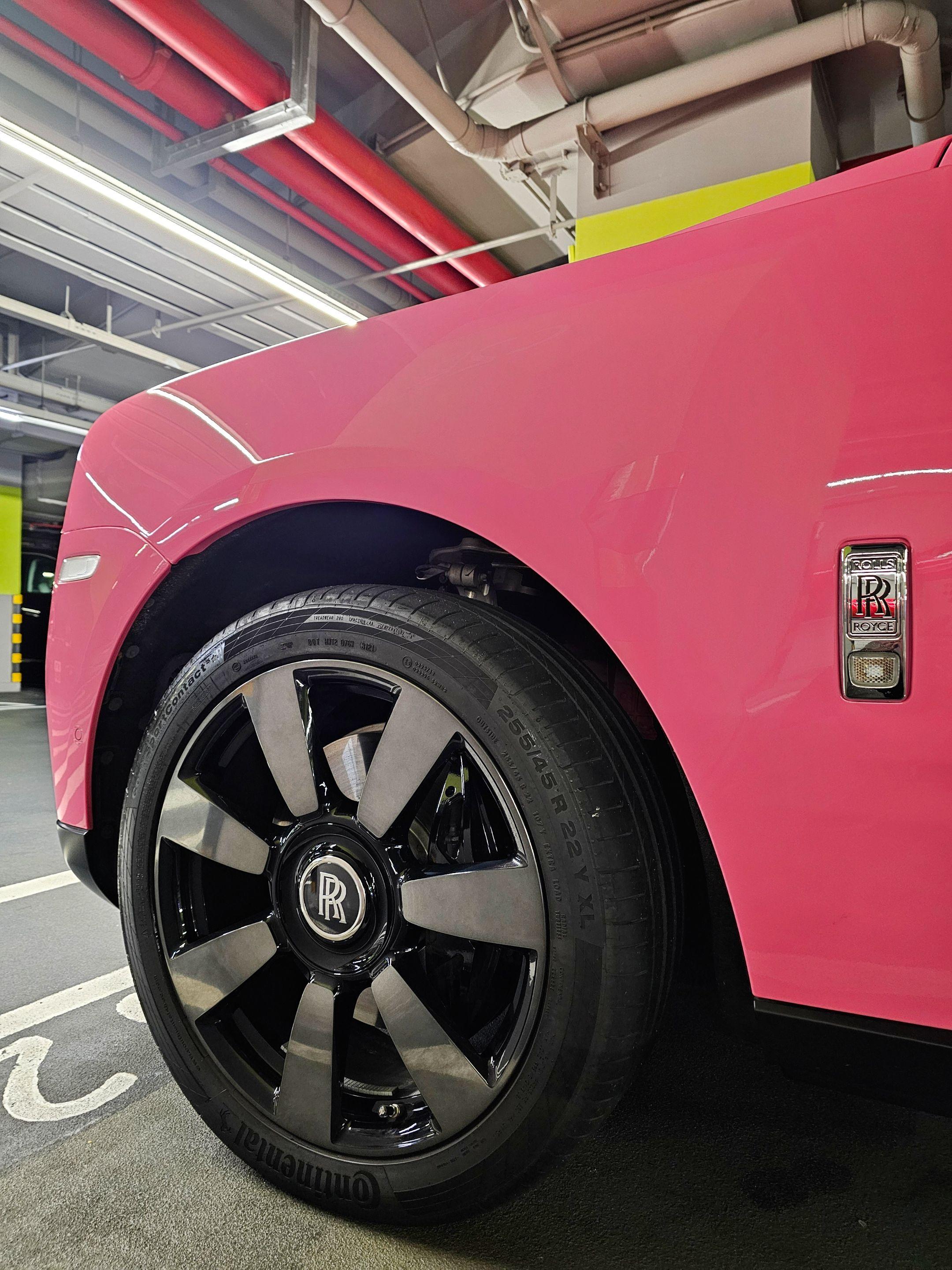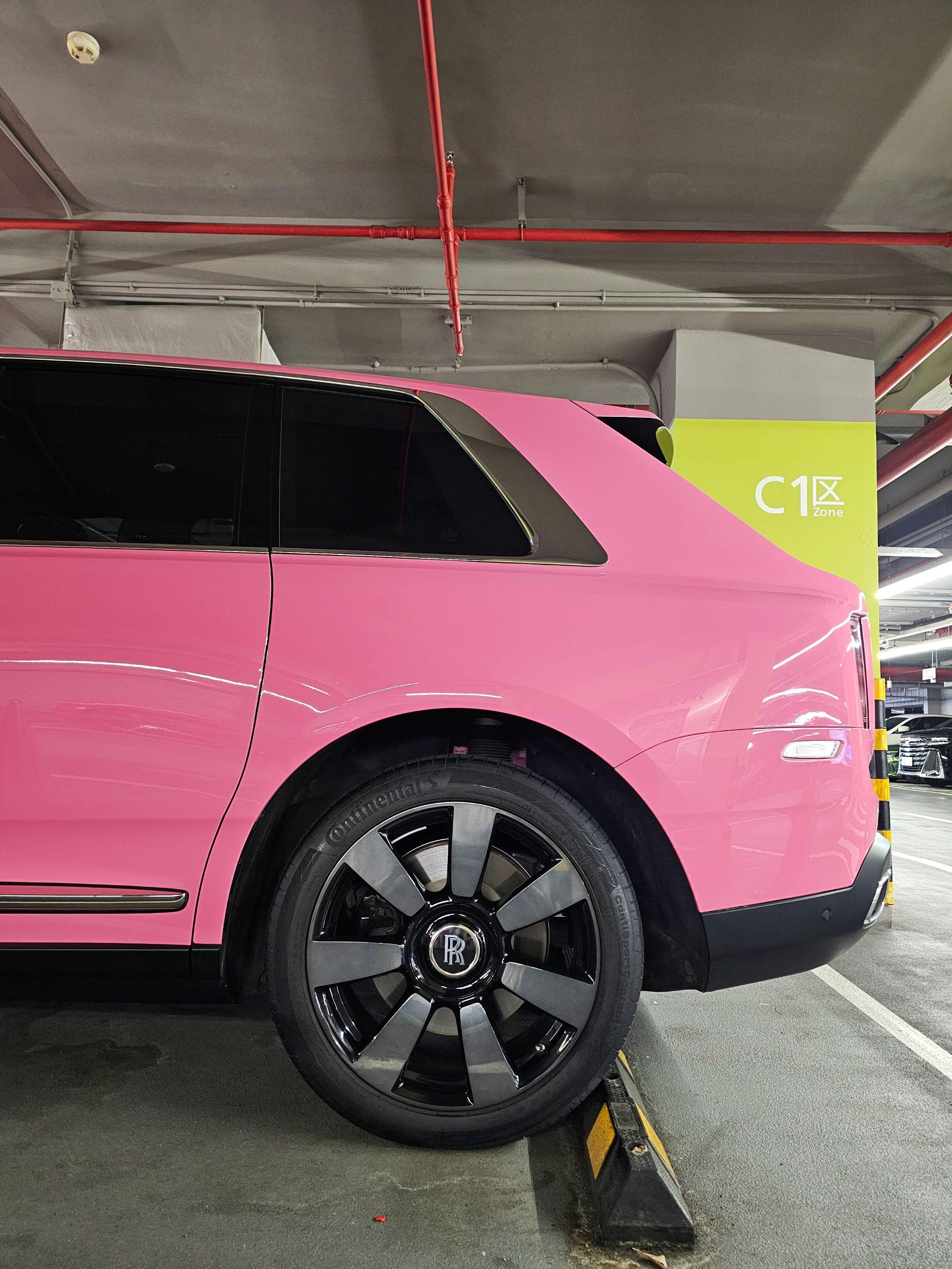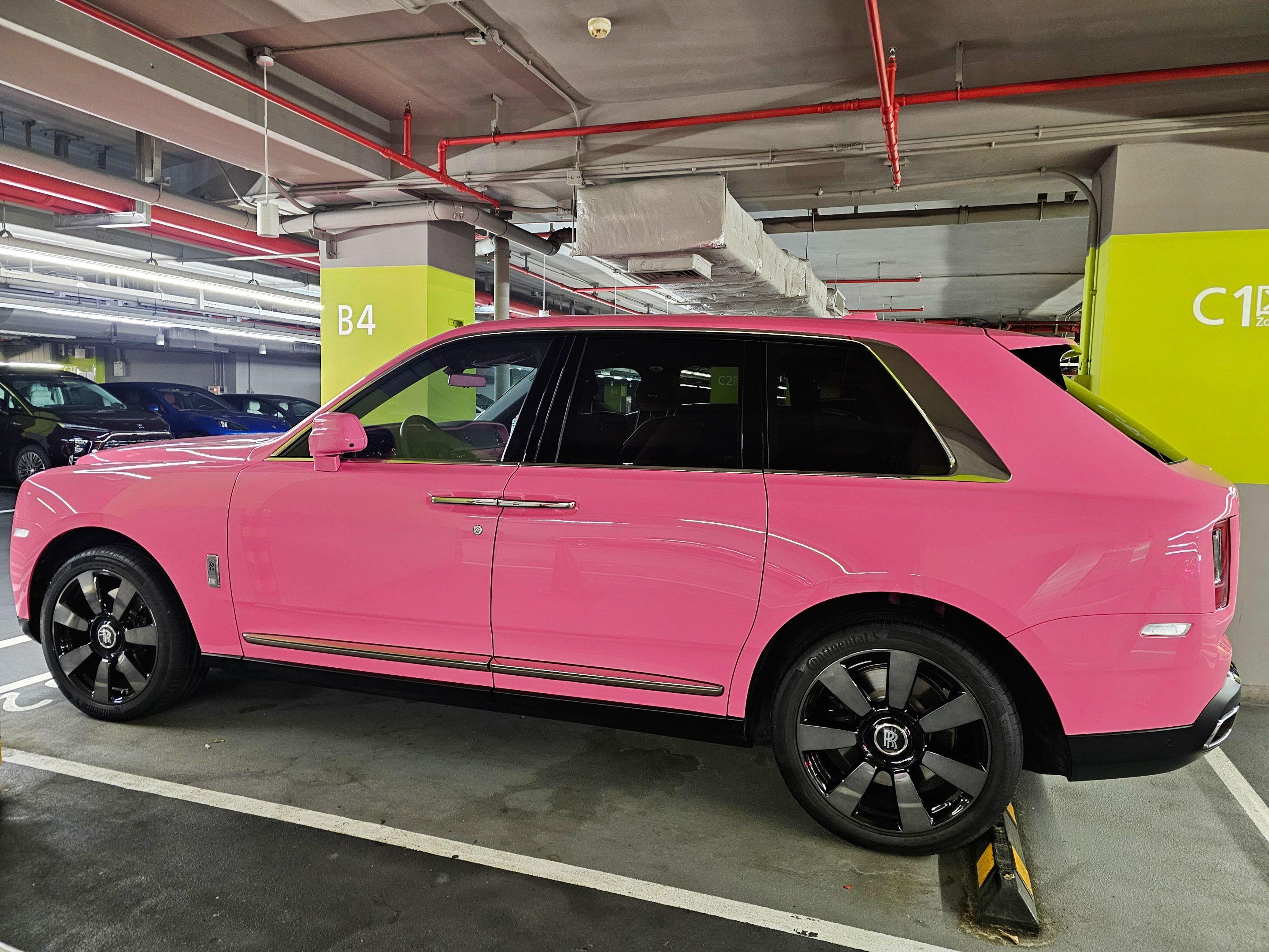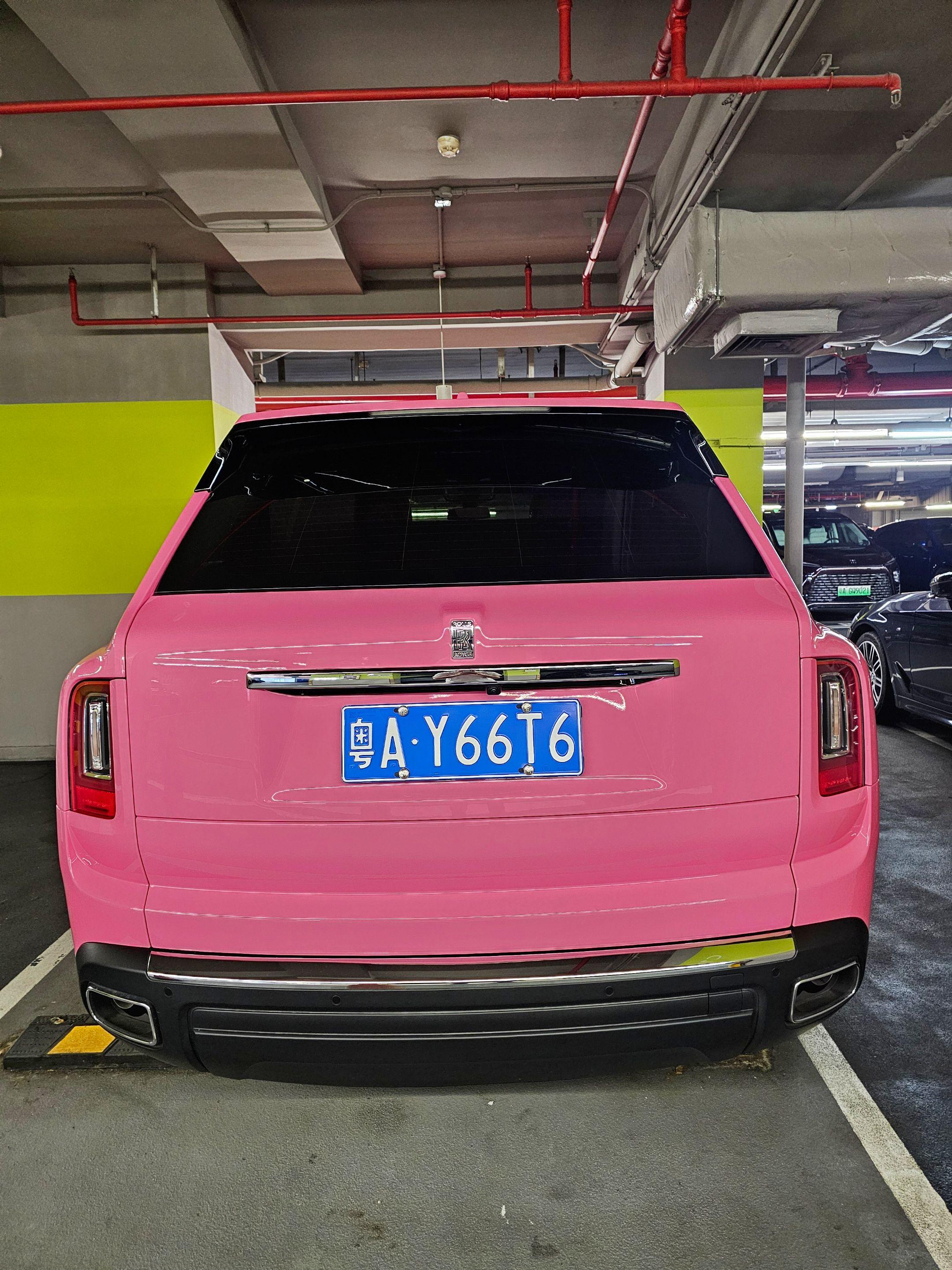 在广州某地库偶遇小姐姐的粉色劳斯莱斯库里南,粉色外观粉色的内饰座椅,这是多少女孩子的梦中情车啊!