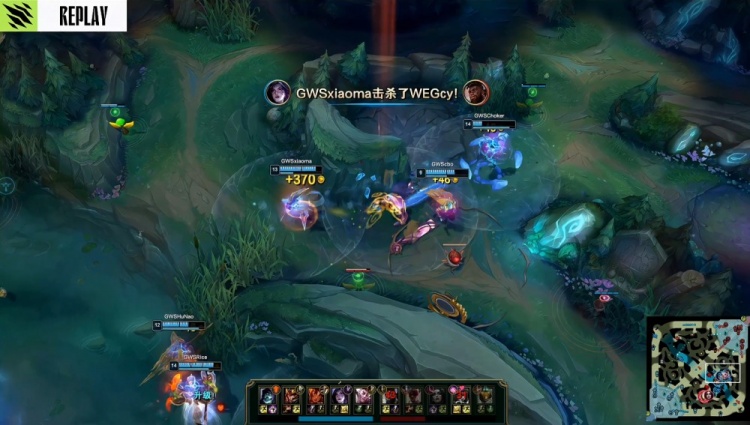 [8:35]巢虫团,lele盲僧被PYL洛抬飞再遭友浩皇子火锅扣脸击杀,瞳夕霞来正面击杀友浩,xiye妖姬融化PYL洛,xiye妖姬埋伏草丛被,GWS打出3换5团灭WEG。