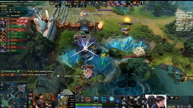 [20分钟]Liquid带盾推进,Ame恐怖利刃被点灯后遭不住mICKe玛西输出,BKB换血后也只换了一个Nisha大鱼人的盾,NTS撼地者过来想帮忙又被断,一二号位接连阵亡,Liquid经济领先达到7K。