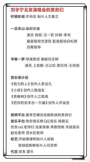 !刘宇宁演唱会直接变内娱团建现场!影视、音乐、综艺圈大佬齐聚,三大平台贵宾 +