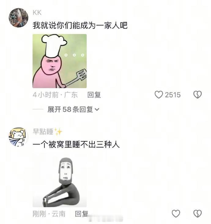 果然一个被窝里睡不出三种人哈哈哈哈哈哈哈哈