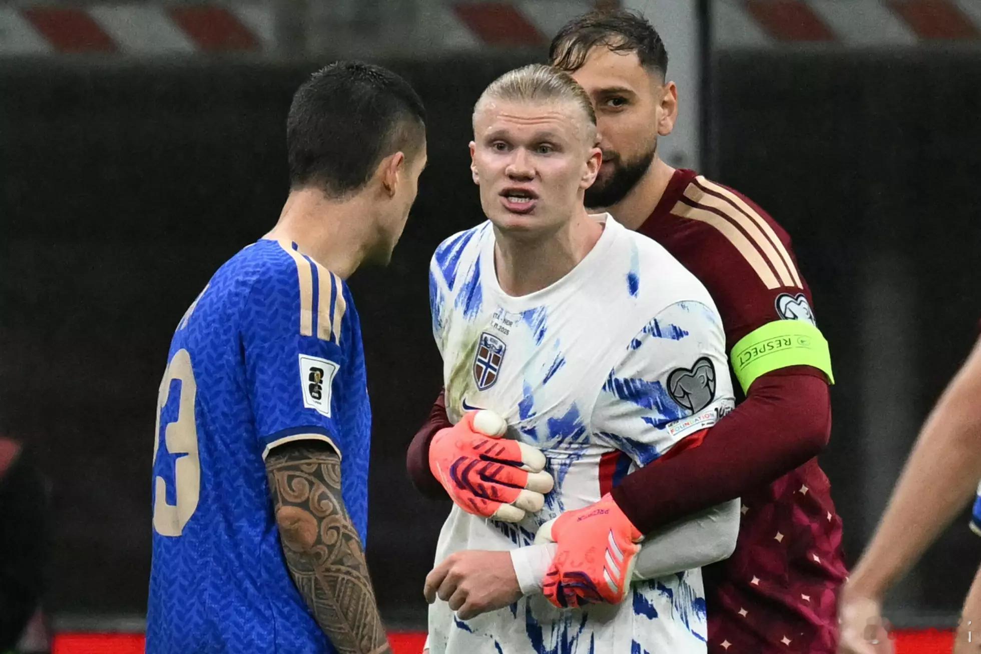 意大利三中卫体系居中的是詹卢卡-曼奇尼,他在比赛中主要任务是盯防哈兰德,上下其手,用尽了各种小伎俩,一度让哈兰德非常生气。哈兰德的曼城队友多纳鲁马充当和事佬,哈兰德抱怨说,他抓了我屁股!但意大利防线还是在下半场崩溃了,多纳鲁马竟然丢了4个,这不是他的责任,是意大利后卫线太差了,尤其詹卢卡-曼奇尼,灾难般的表现。所以哈兰德1分钟内打进第二个进球后疯狂庆祝,被黑手黑脚干了一晚上,现在用进球去惩罚对手,太解气了啊!