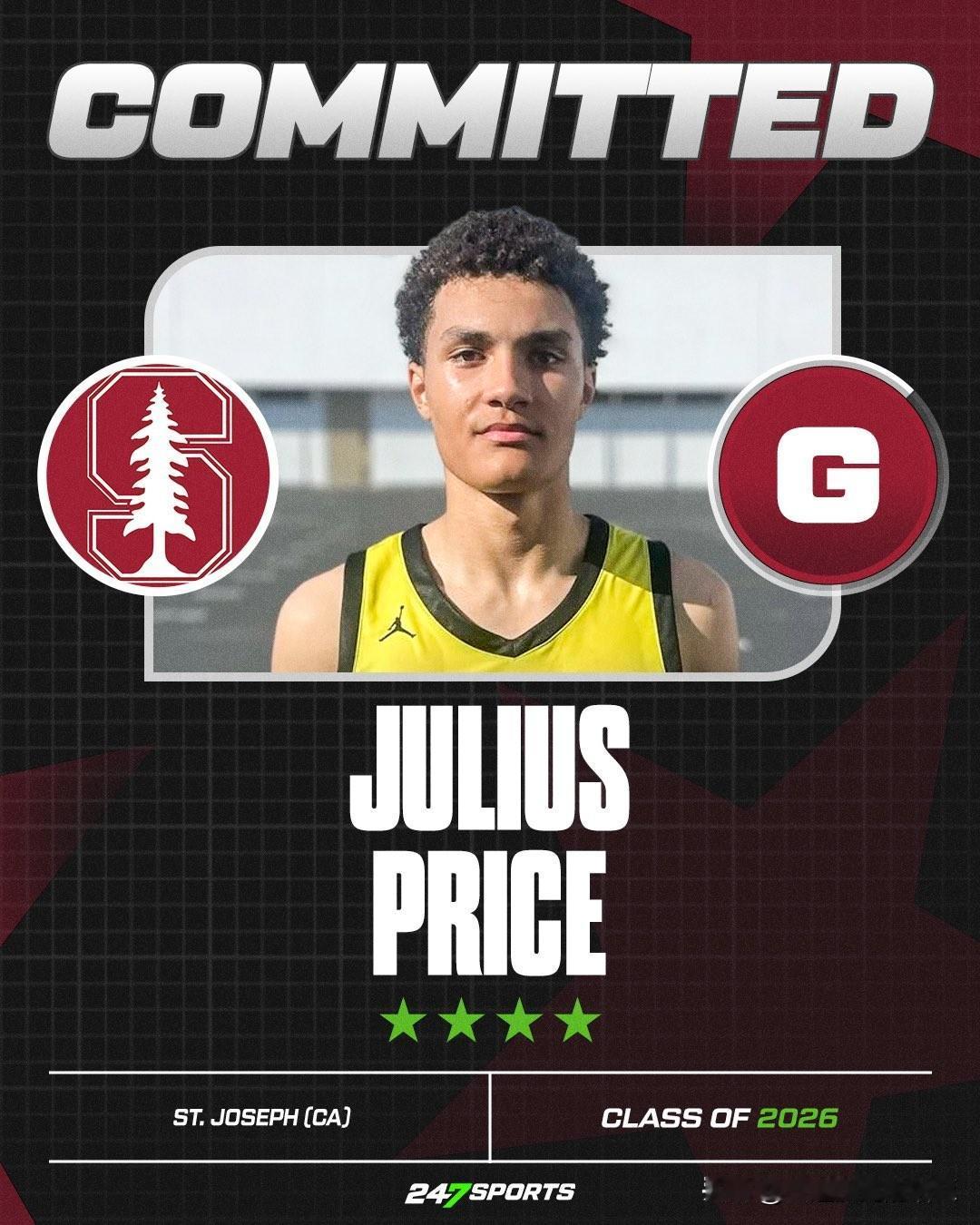 四星后卫Julius Price宣布承诺NCAA男篮 斯坦福大学,身高6-3=191,来自瑞典,就读于加州St. Joseph's高中,他表示很喜欢与教练组建立的联系,就像是一种家庭氛围,比赛风格适合自己,球队这届收到的第四位加盟者,之前还有Aziz Olajuwon,Isaiah Rogers与Elias Obenyah。