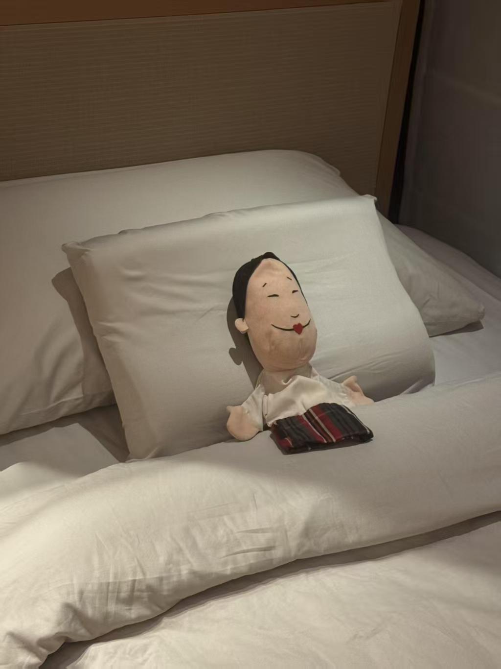 沈佳润的带爸出行也太萌了!化妆时要把小沈阳玩偶揣在身边,打卡音银楼梯间也不忘带着