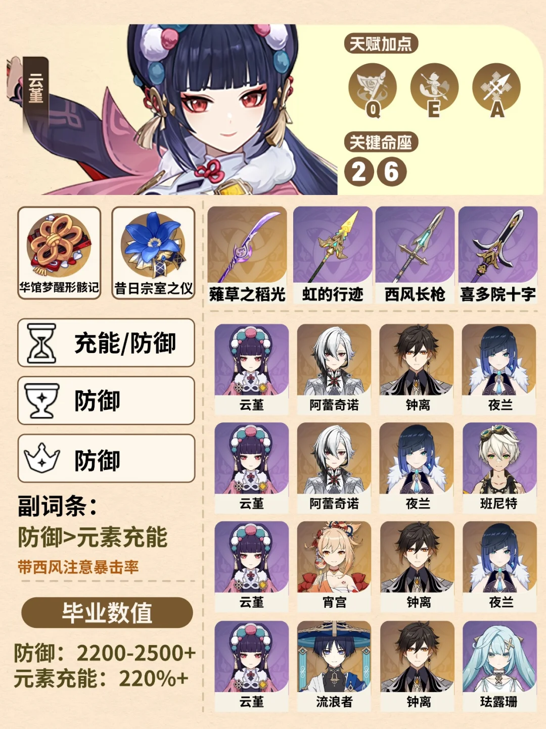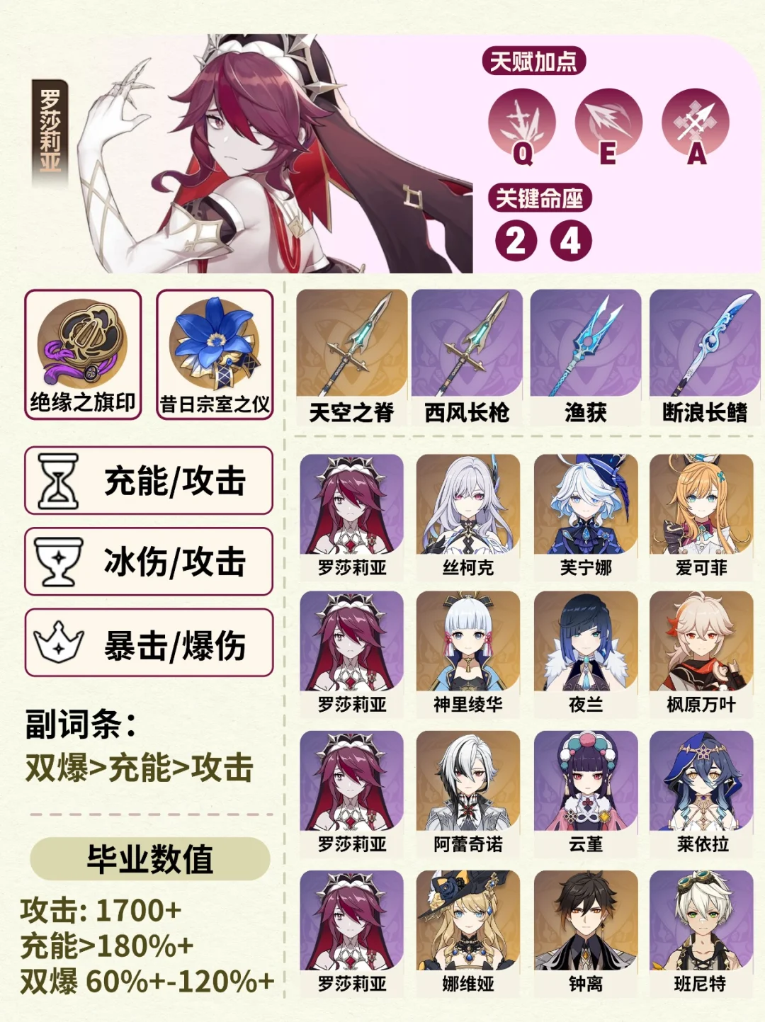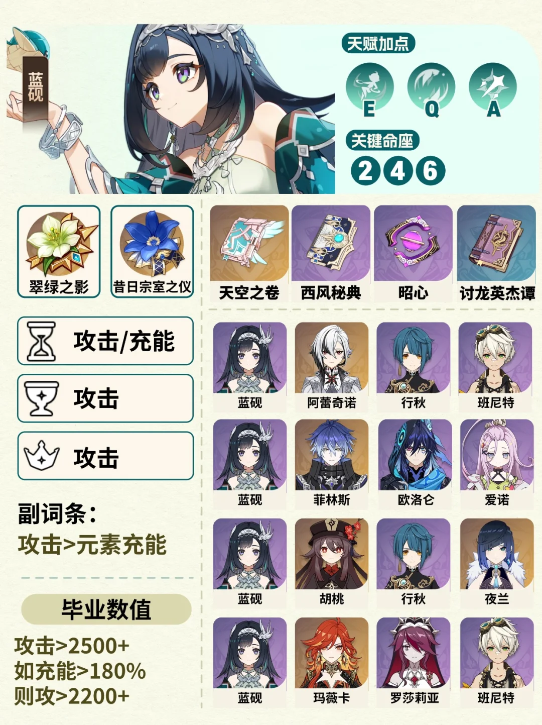 月之二四星角色攻略必看一图流攻略🥺 包括:蓝砚、云堇、罗莎莉亚