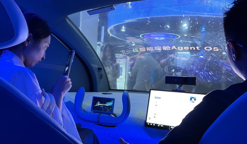 在大会的展览现场,除了热门的自动驾驶体验,智能座舱技术同样备受关注。“欢迎来到下一代智能座舱Agent OS,多模态融合的交互技术可以快速响应乘车人的需求。比如识别到乘车人在打电话自动降低音乐音量,根据记忆导航到曾经去过的餐厅。”工作人员介绍道。这款由阶跃星辰、千里科技、吉利汽车共同研发的“智能蛋舱”,凭借颇具未来感的外型和功能,成为本届大会的“镇馆之宝”之一,吸引众多观众排队体验。