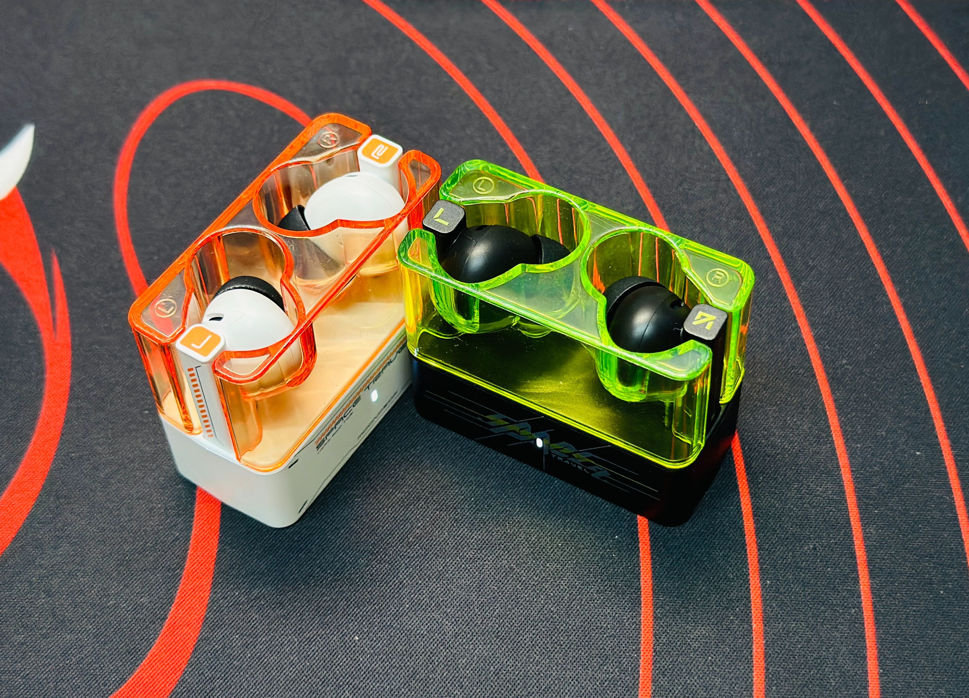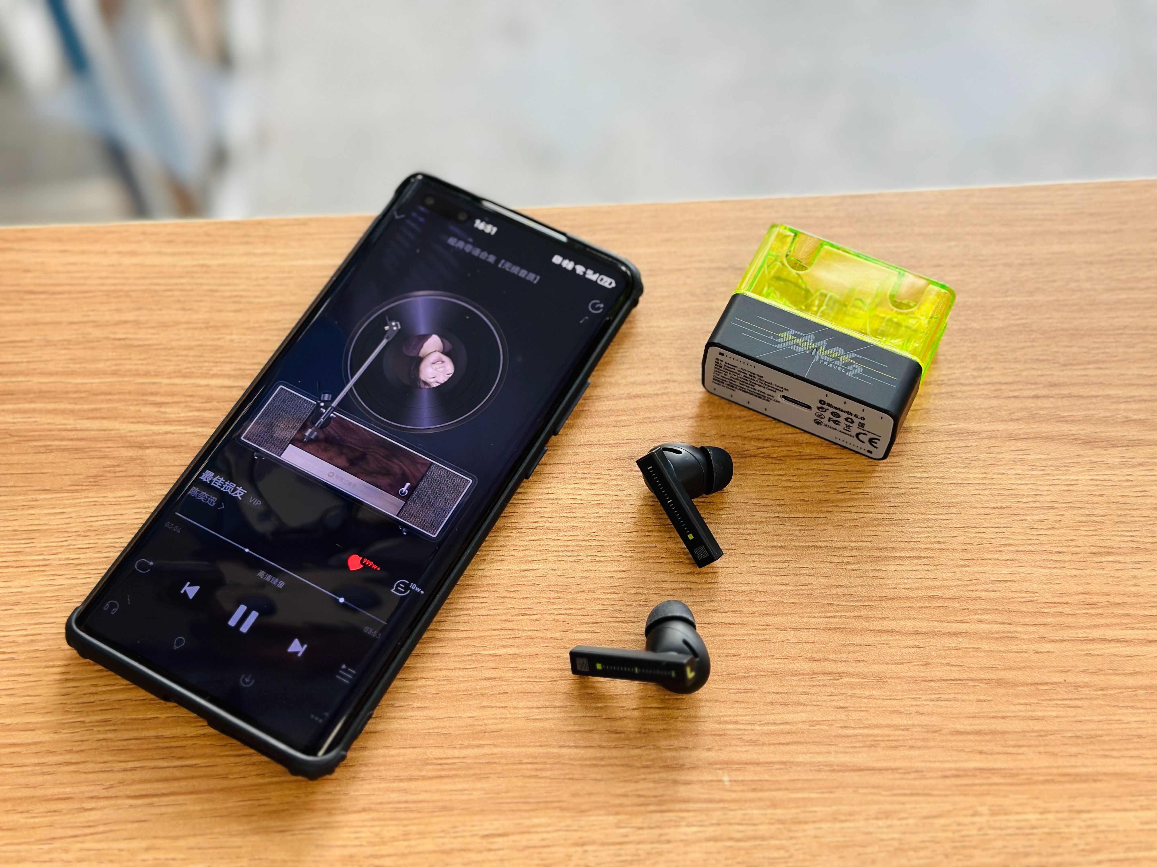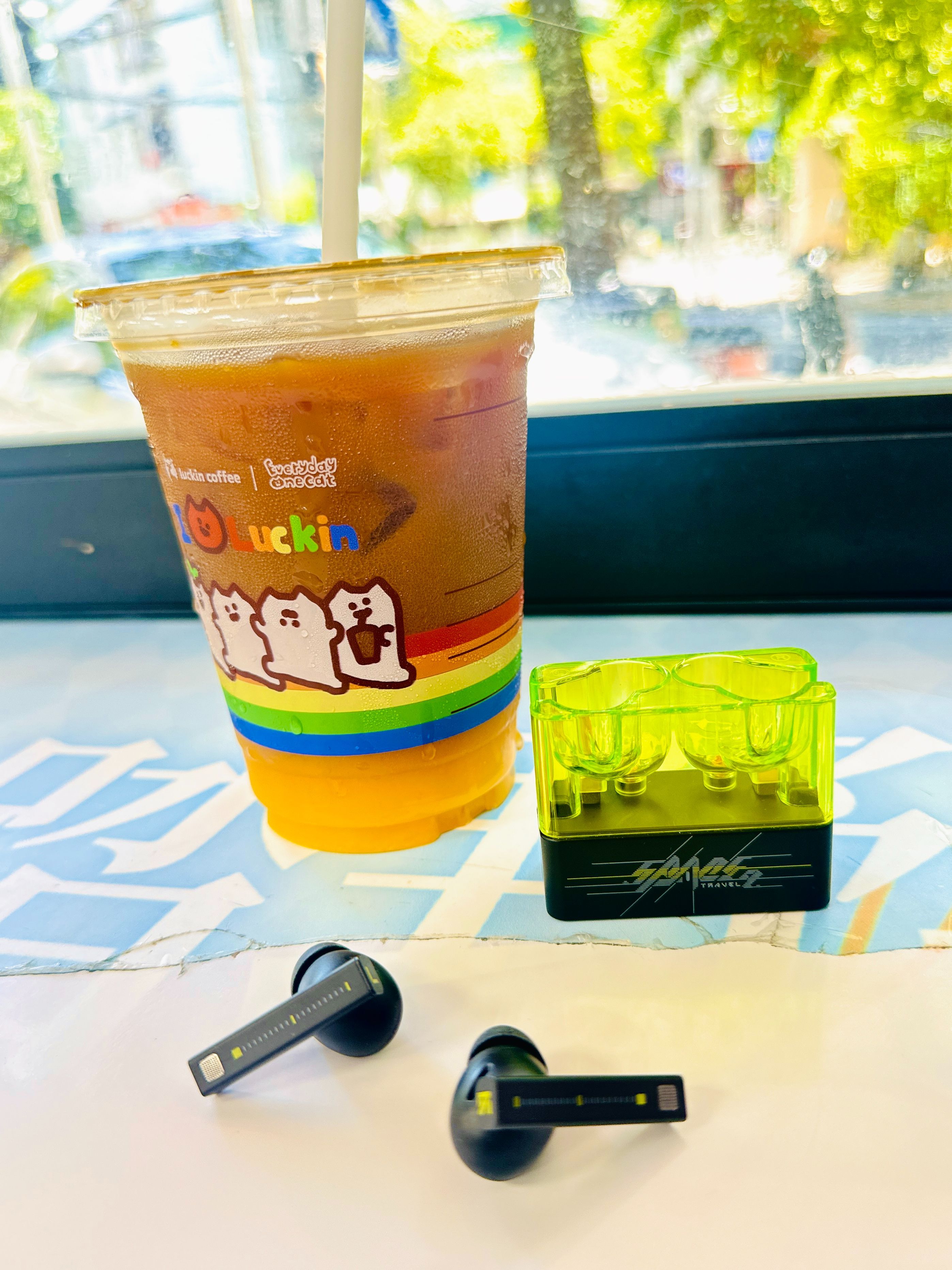 充电仓是这次最戳我的设计。黑绿透明壳像《流浪地球》里的休眠舱,耳机竖插在两侧,像两枚待命的发射火箭。磁吸力度适中,倒扣不会掉,但一开单手滑出时有点“卡住”——可能是新机的阻尼感,熟练以后就会好得多。