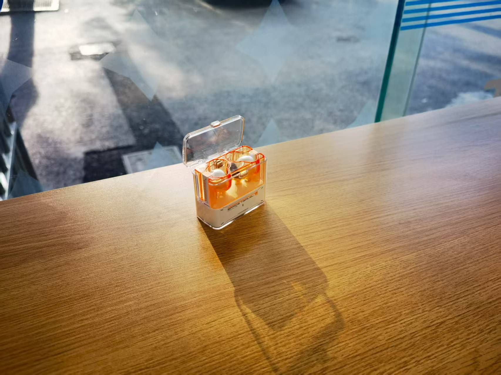 另外说个小槽点,透明仓虽酷,但是顶部没有盖子,有点容易进灰;另一个就是怕耳机容易掉出来(虽然我还没有掉出过,但就是担心)