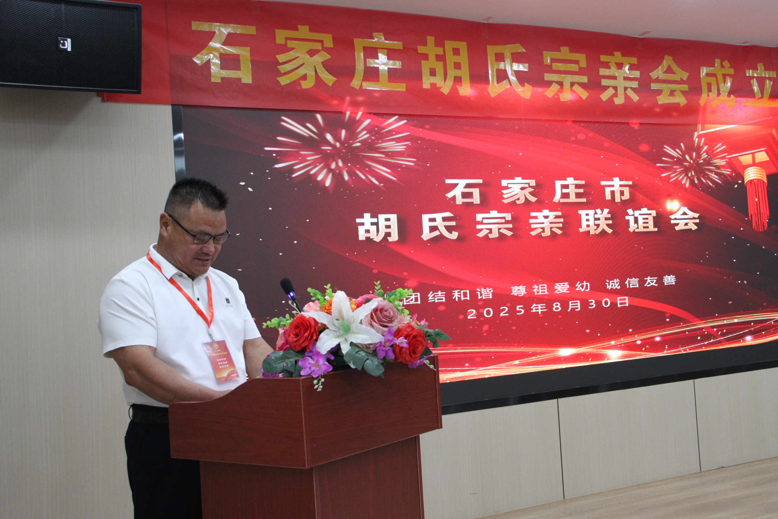 2025 年 8 月 30 日,秋高气爽,祥云汇聚。河北省石家庄市胡氏宗亲联谊会成立大会在河北省省会石家庄隆重召开。来自省内外各地的胡氏宗亲代表、特邀嘉宾及社会各界人士数十人齐聚一堂,共同见证了这一承载着深厚家族情怀与历史使命的盛会。