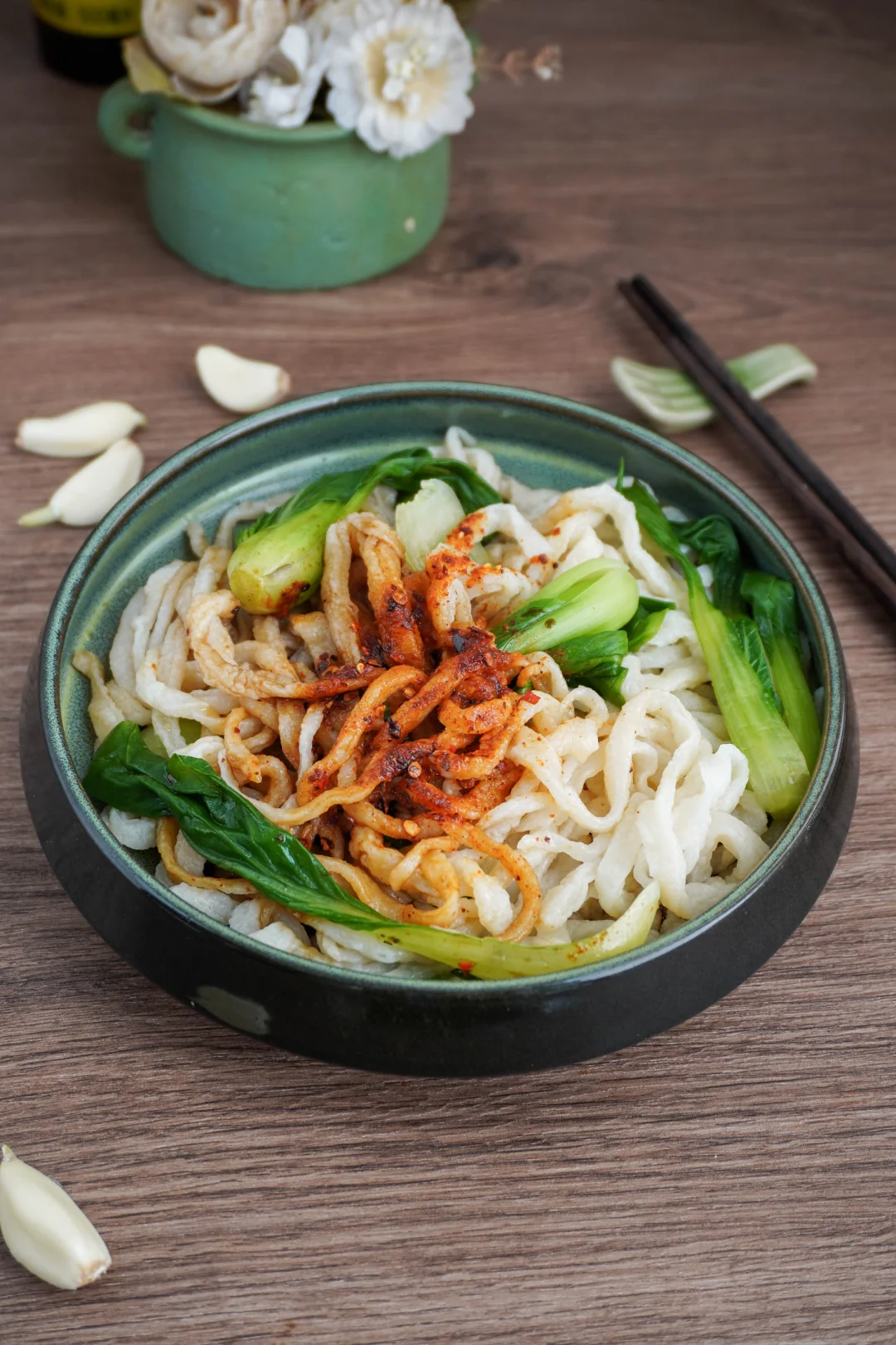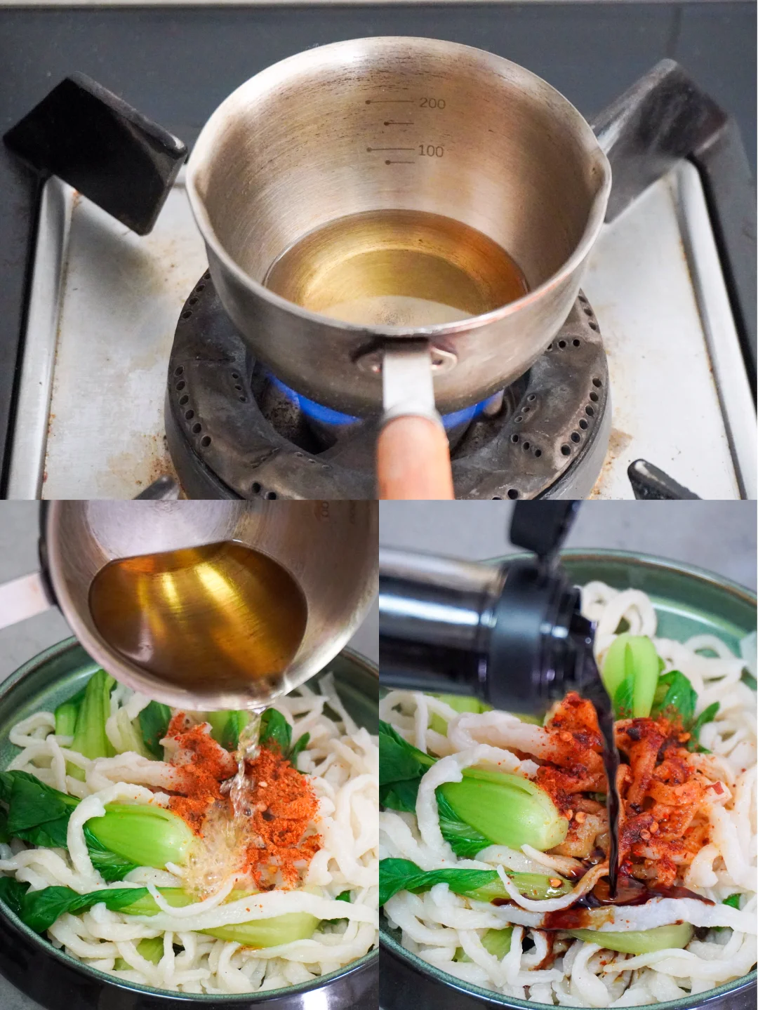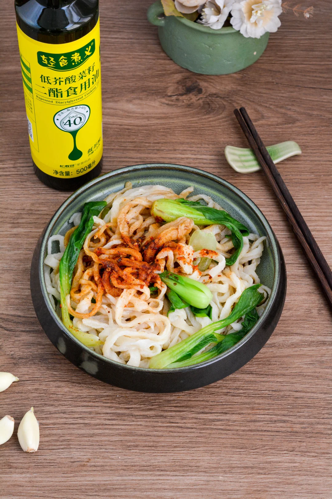 包饺子剩下一块面,正好做2人份的油泼面 面团擀薄片,折叠后切细条 入锅煮熟,捞出过凉水,放一把青菜焯烫变色 面条和青菜入碗,撒上辣椒面 泼上烧热的二酯油 滋啦一声响,油香、辣椒香蹿出来 淋上酱油和老陈醋 这碗油泼面吃得心满意足 长寿花28年国货老品牌,这款“轻食煮义”低芥酸菜籽二酯食用油,甘油二酯含量40%,代谢快,不会堆积在体内,从饮食源头减少脂肪的摄入,做菜随便放,既增香,还使身体无负担。