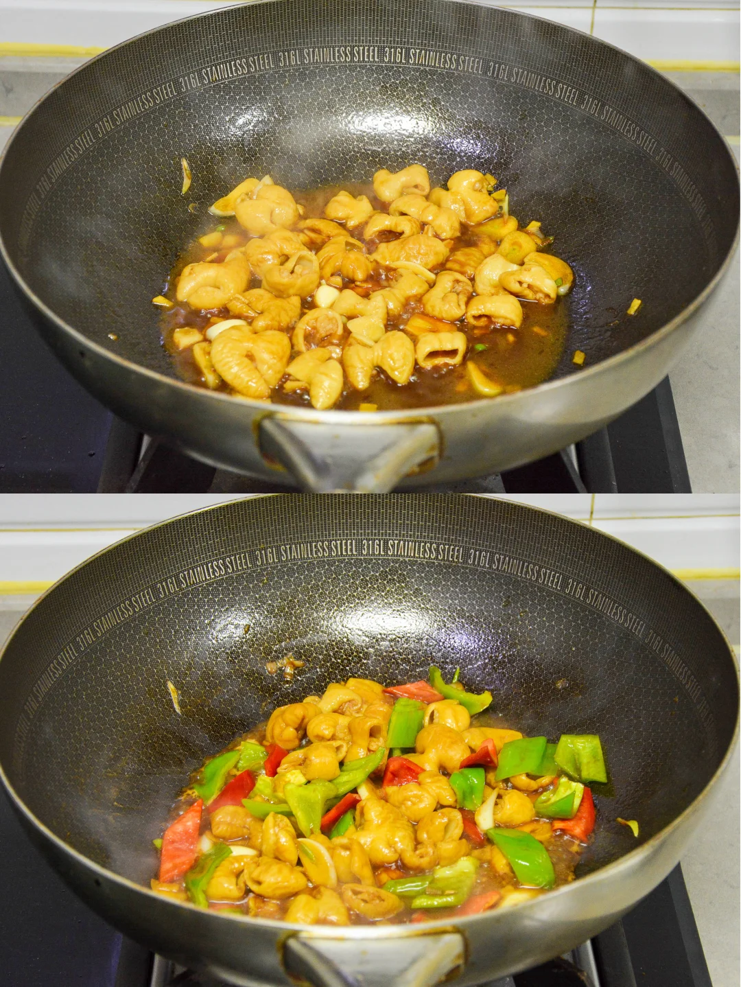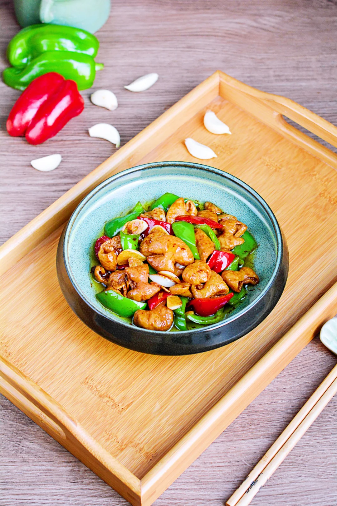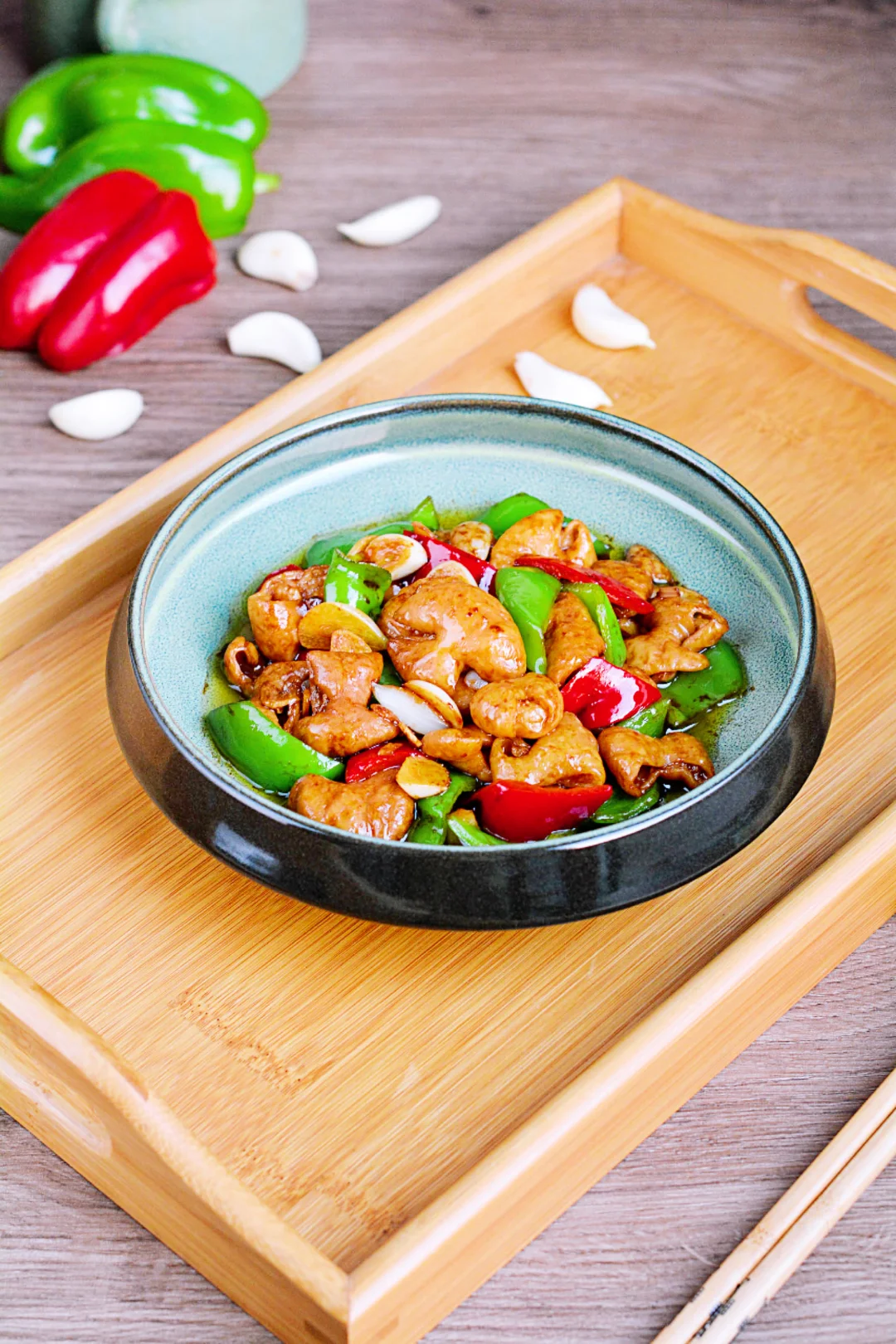 双椒炒肥肠,鲜美弹口,巨下饭