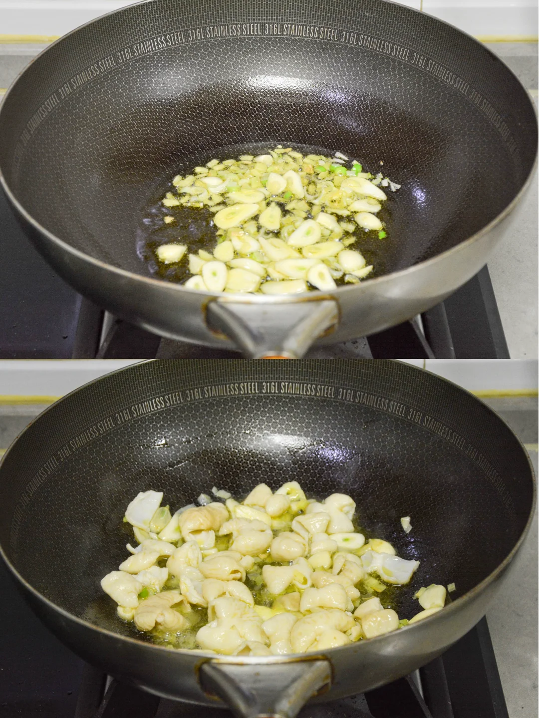 【双椒炒肥肠】 1. 备料:白水肥肠控去多余的水,青红椒去籽、洗净; 2. 青红椒切象眼片,大蒜切片,葱姜切末; 3. 热锅温油,葱姜蒜煸炒出香味; 4. 倒入白水肥肠,大火快炒,使肥肠变软; 5. 依次倒入料酒、生抽、盐、鸡精、白糖,大火翻炒上色、入味; 6. 放入青红椒,翻炒变色; 7. 淋入水淀粉,汤汁浓稠发亮,出锅装盘。 【苹果私房话】 1. 白水肥肠解冻后即可烹制,无需清洗; 2. 配菜和调料不限这些,可根据口味调整,青红辣椒、青蒜、洋葱等皆可,会有不同风味。