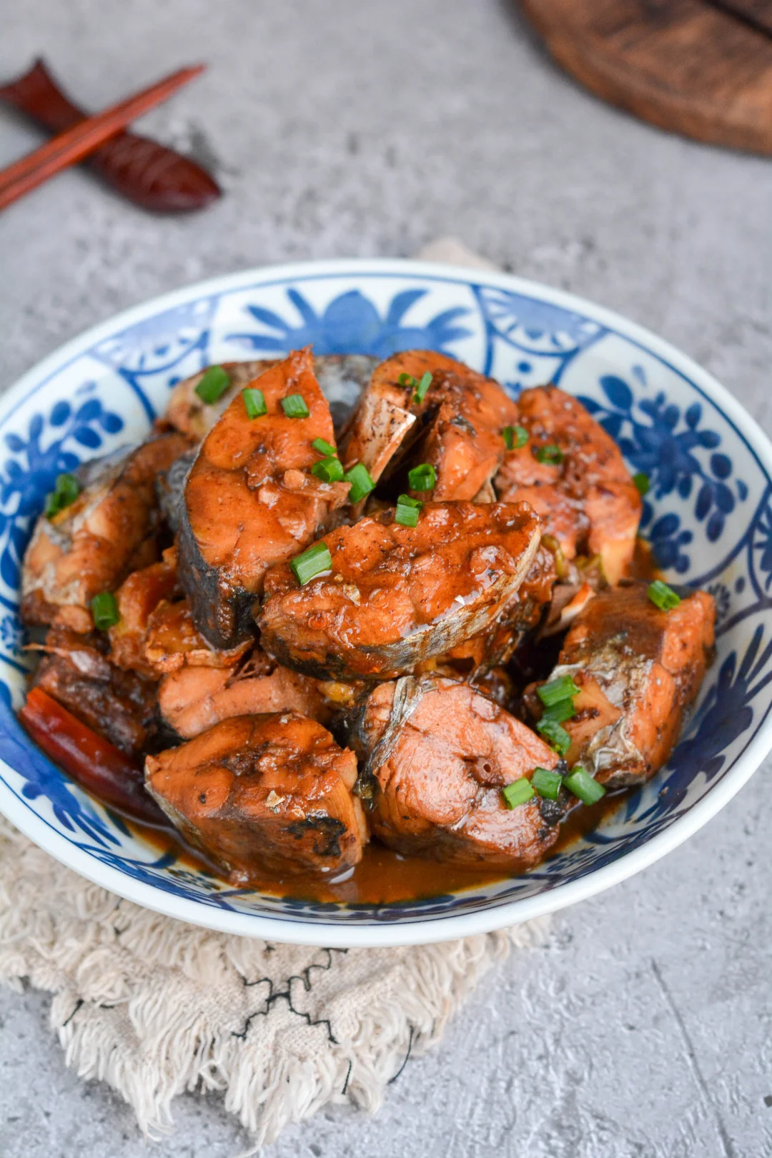 鲅鱼肉质紧实香嫩,鱼刺又少又软,老少皆宜。红烧鲅鱼,做法简单,也不需要煸炒煎炒,直接放汤里炖一炖,浓香开胃。