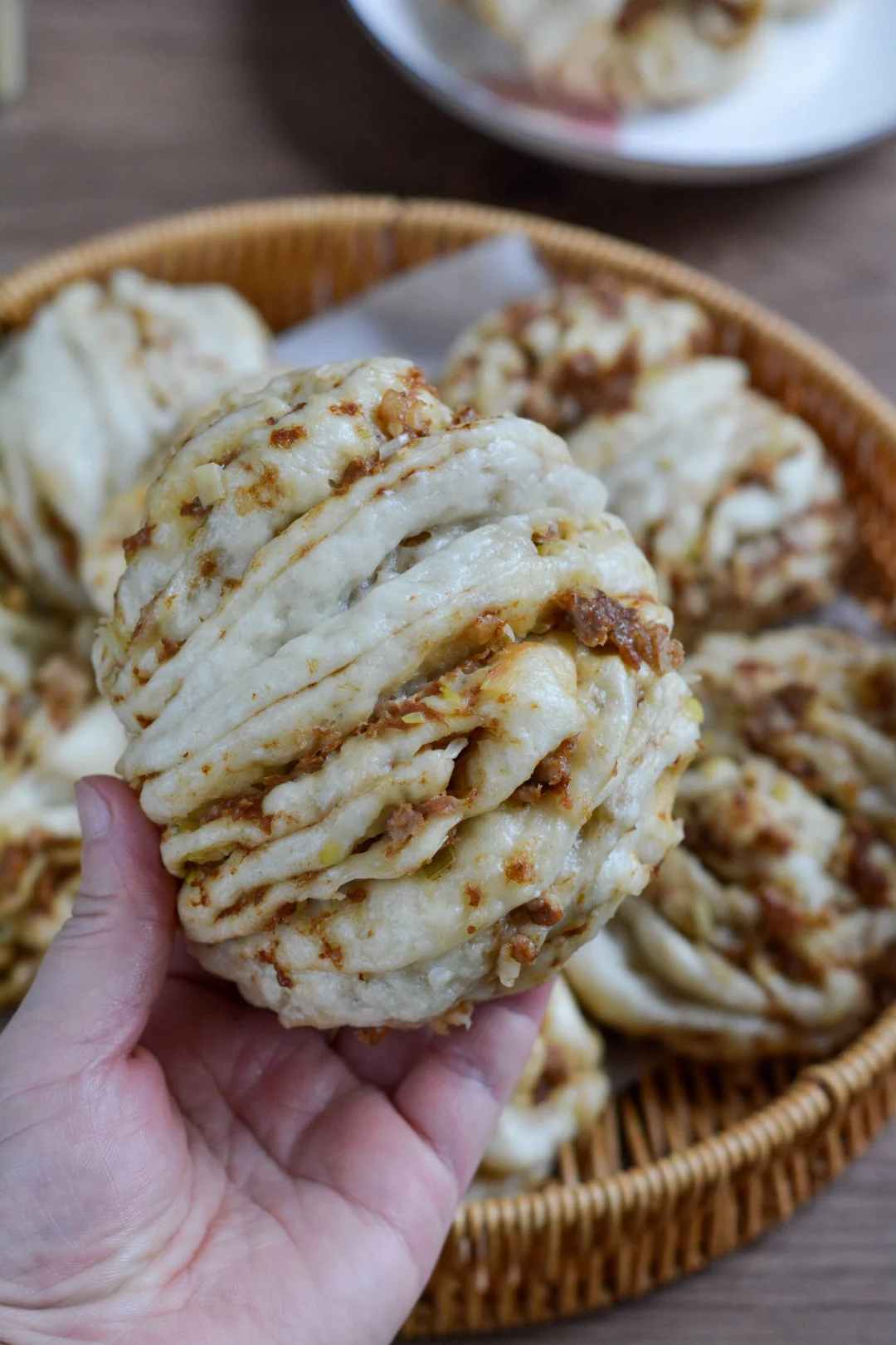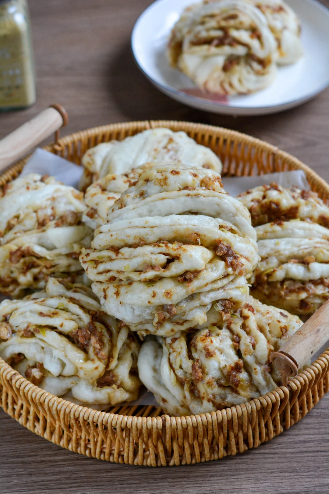 今天蒸了一锅肉花卷,连晚饭和第二天的早饭都解决了。肉香满满,层次多多,空口没菜竟然一个大花卷入肚了。