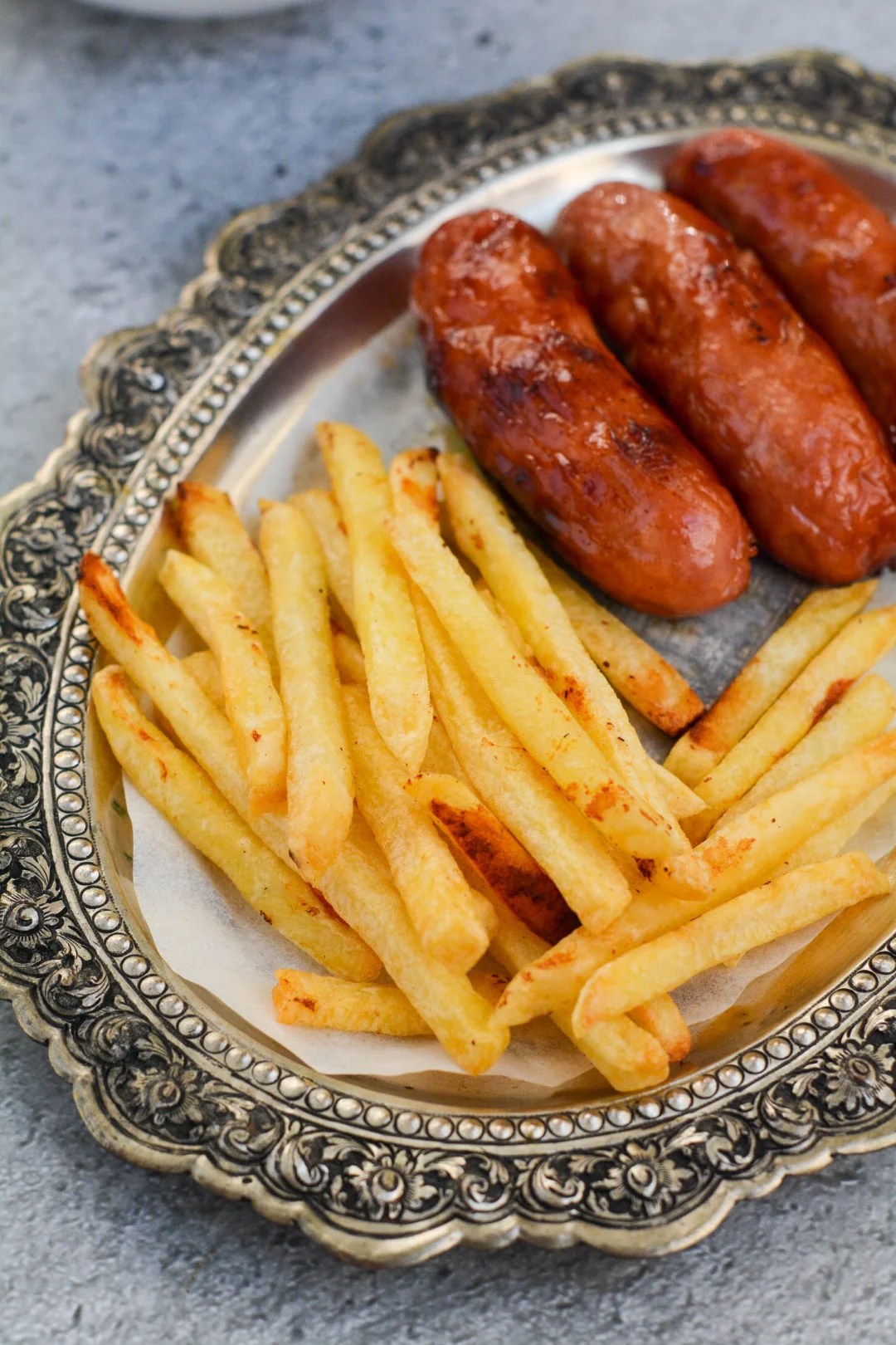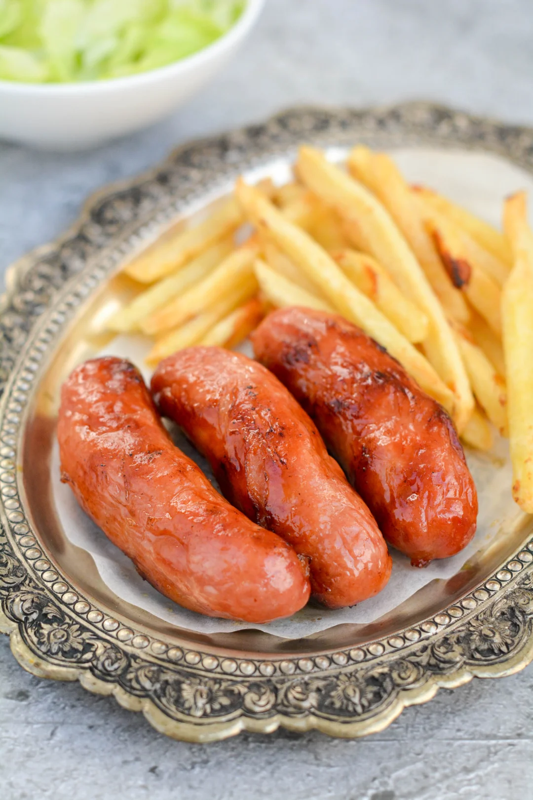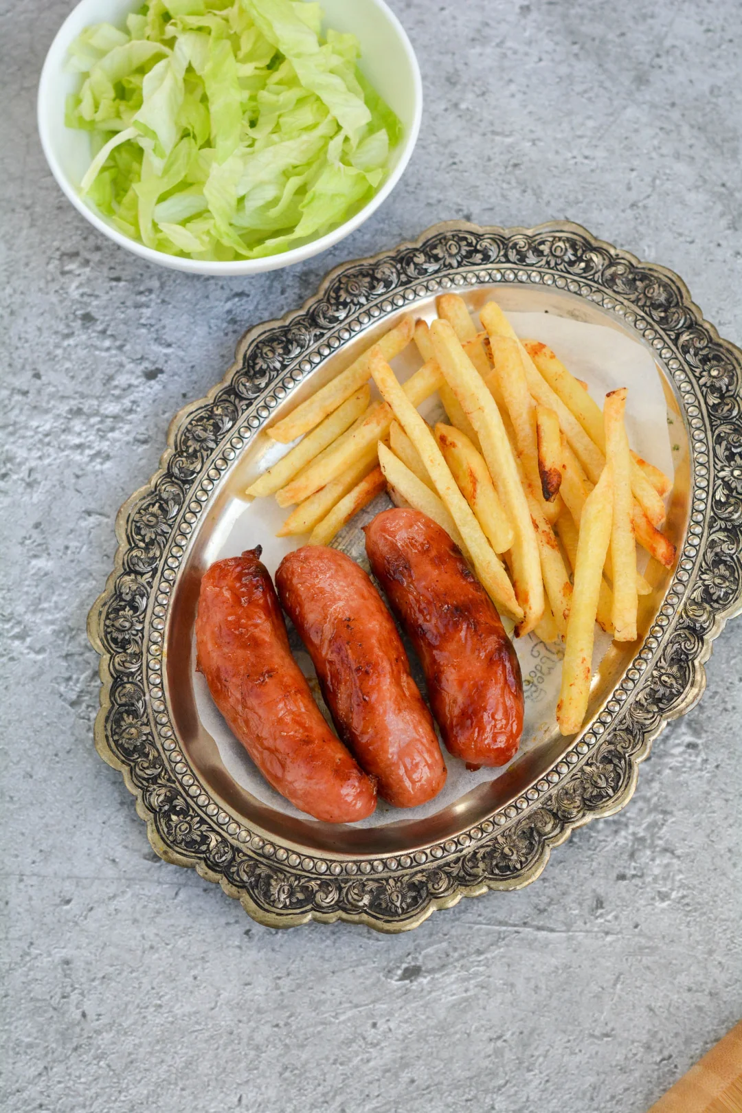 周末午餐一人,烤肠薯条沙拉