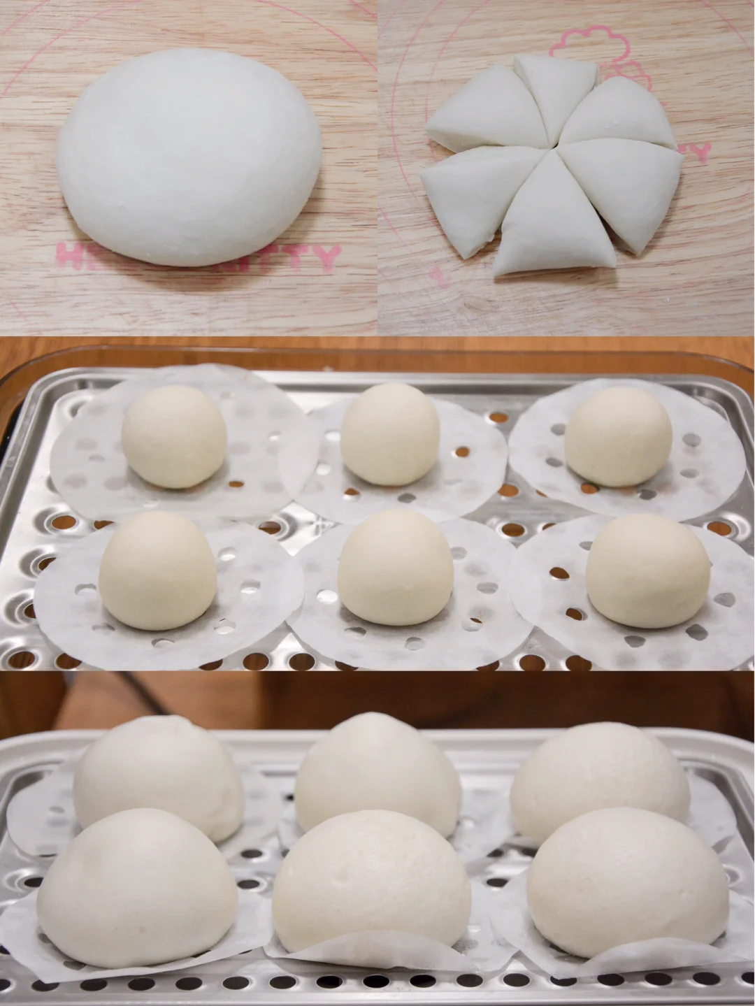 3️⃣码放在蒸锅里,发酵至1.5倍大;