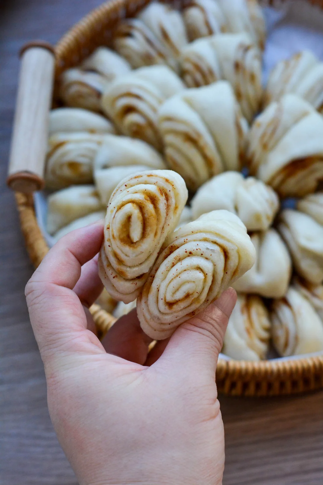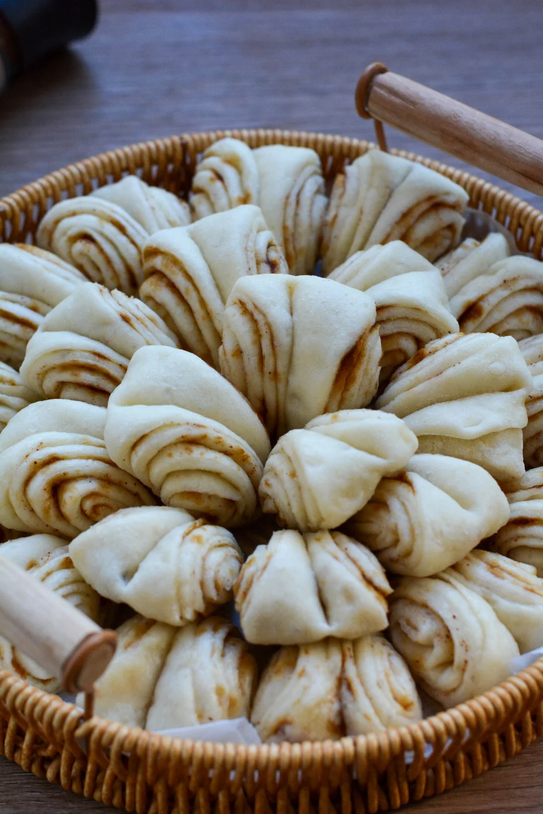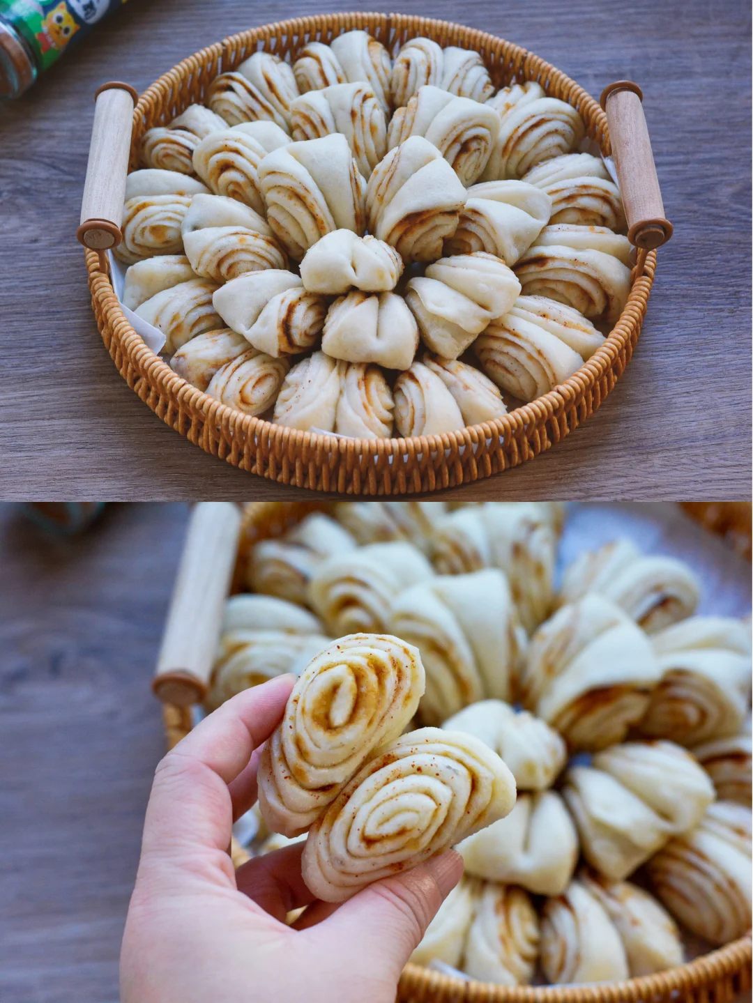 最近超喜欢做面食,这款肉桂红糖花卷,不但能当主食,还能当零食。做成迷你的,三两口就进肚,一次发酵香甜暄软。